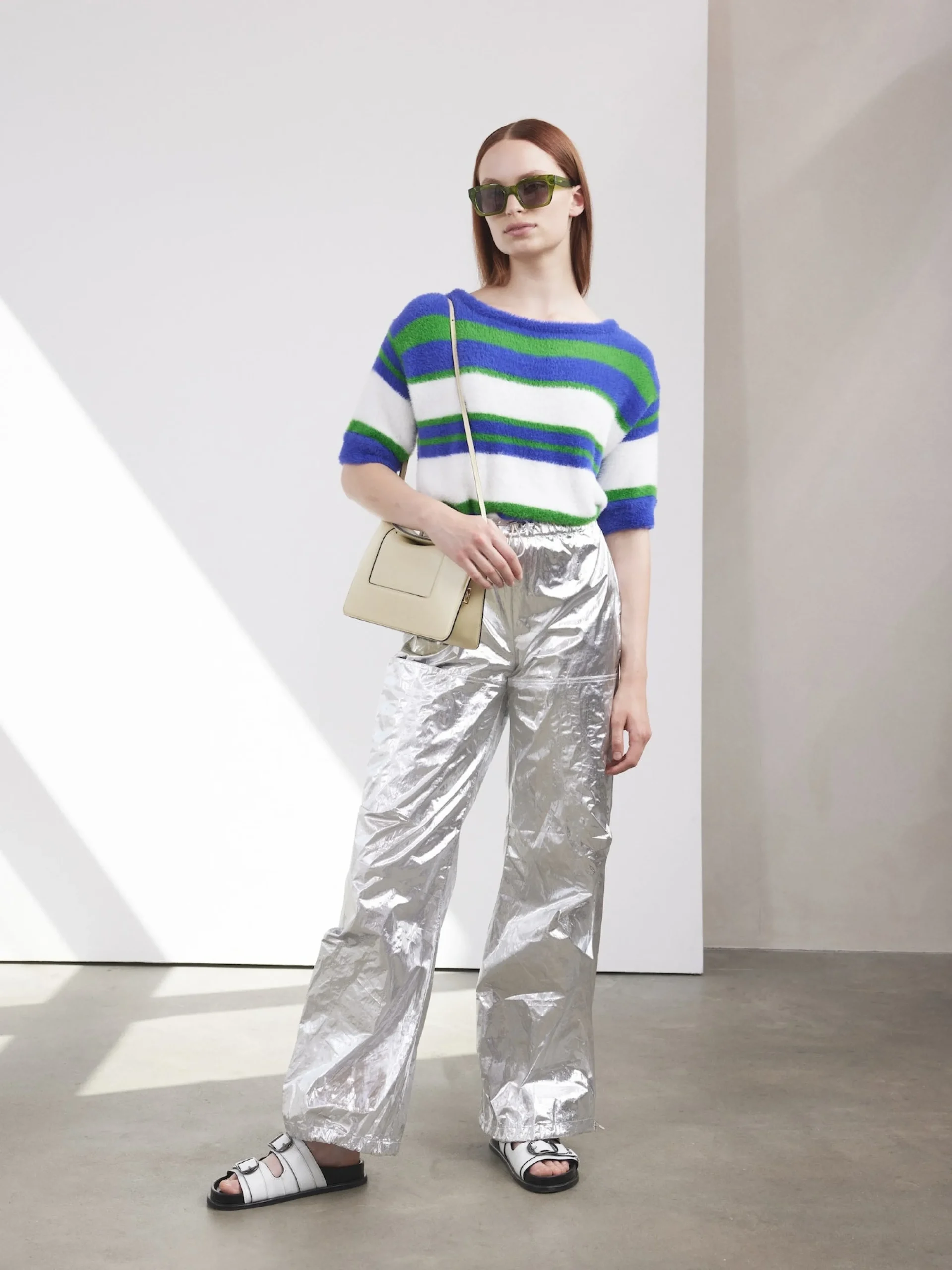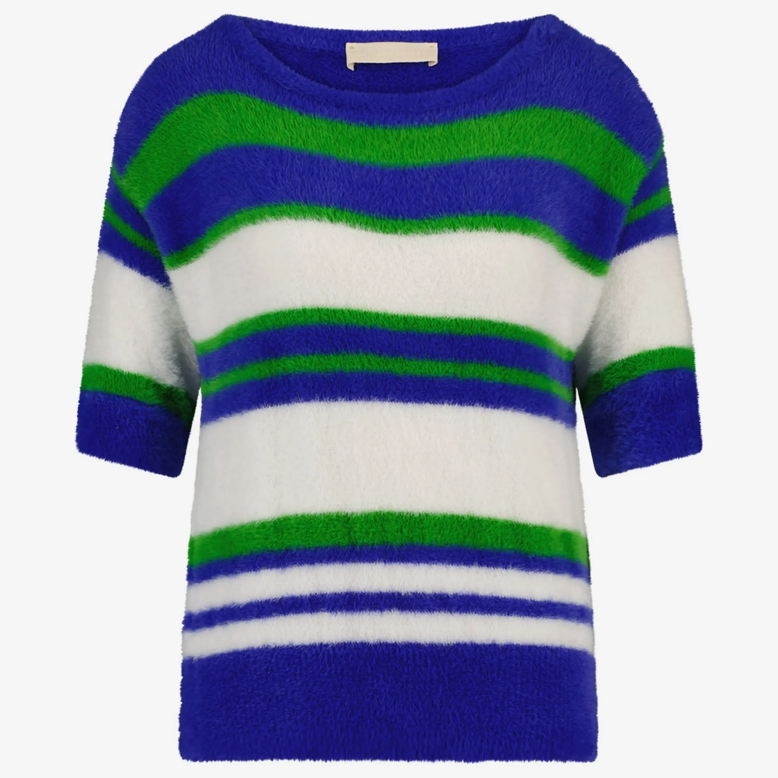 Favola PU: Wrap yourself in elegance with the Favola PU top. Made from a fuzzy knit, it offers a soft and luxurious feel. The dropped semi-sleeves and wide crew neck add a touch of chic fashion. Elevate your style effortlessly with Favola PU, a perfect blend of comfort and sophistication.The model is 1,79 cm tall and is wearing size S.
