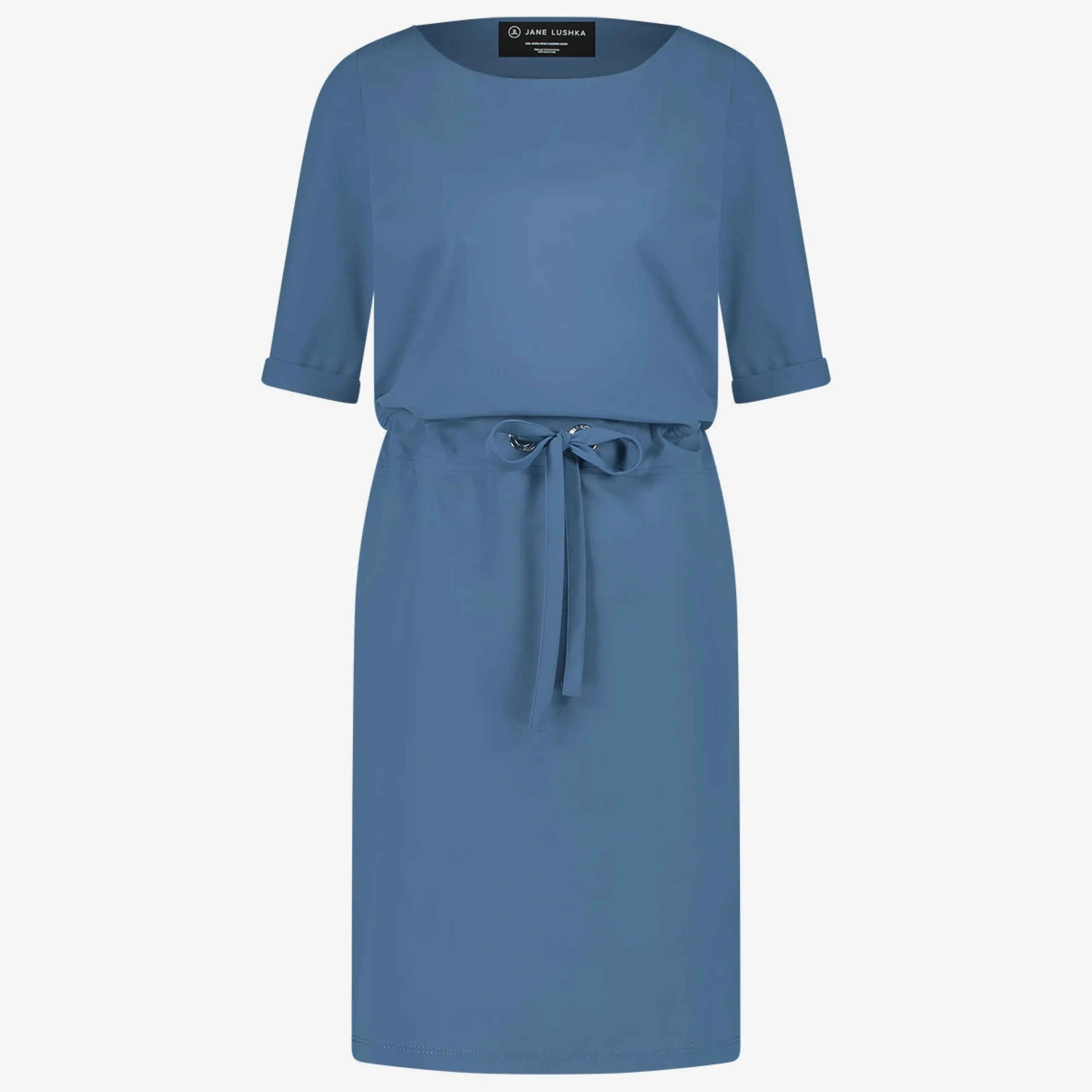 Elevate your wardrobe with the Lea dress, a chic ensemble crafted from heavy stretch technical jersey. The regular fit ensures comfort without compromising style. The addition of rings with a belt accentuates the waist, providing a touch of modern flair to this timeless piece. The model is 1,79 cm tall and wearing size S.
