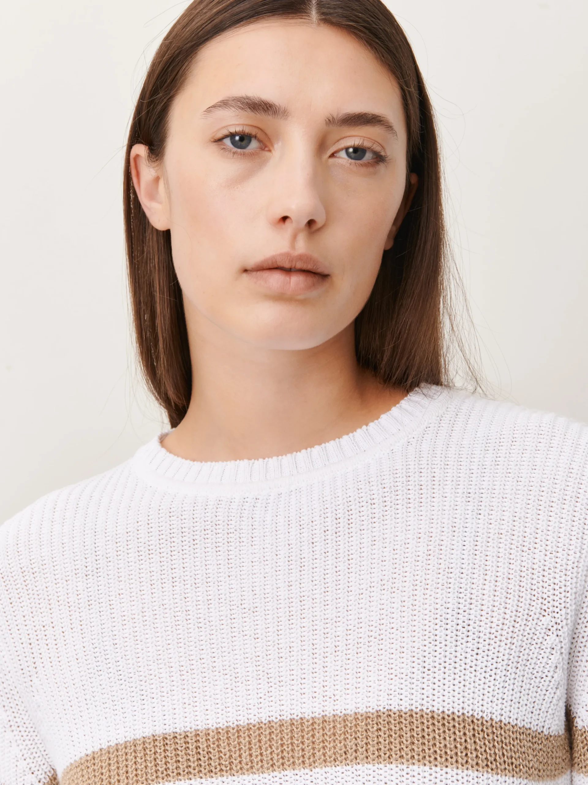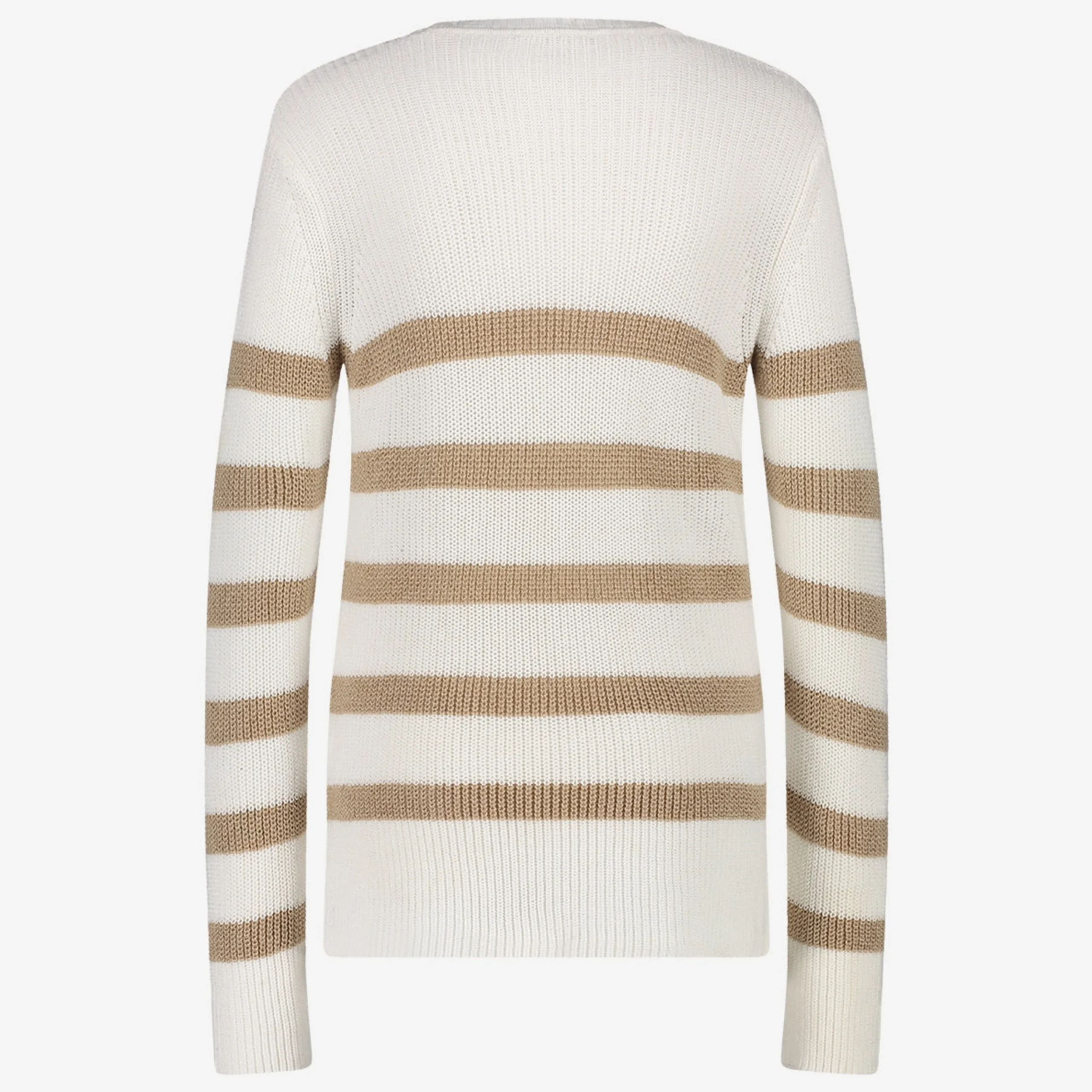 Choice PU: Elevate your summer wardrobe with this cotton pullover featuring a rib stitch knit. Stripes that never bore create a timeless yet playful pattern. The long sleeves and round neck add comfort and style to your ensemble. Make the Choice PU pullover your go-to for a classic and chic summer look. The model is 1,79 cm tall and is wearing size S.