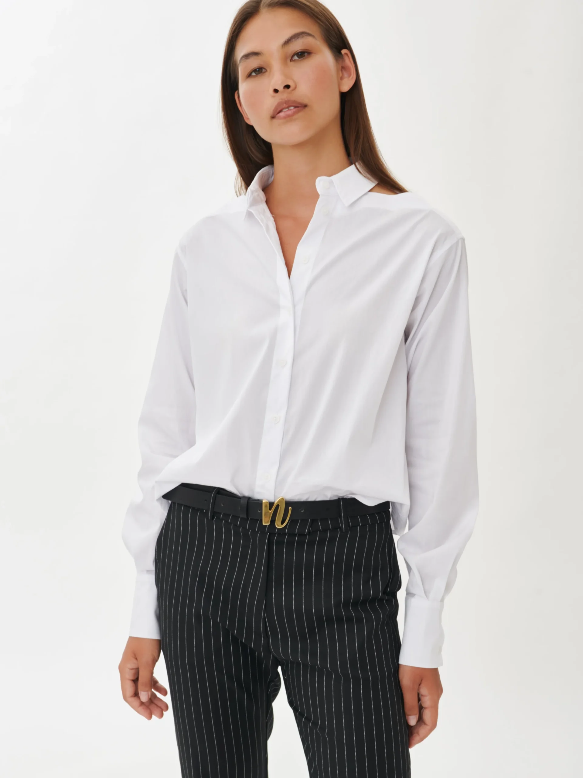 Ann Blouse: Elevate your style with the Ann Blouse from our Studio collection. Crafted from organic cotton in a poplin style, this cropped blouse features open shoulders for a contemporary and chic look. Make a statement effortlessly with Ann Blouse, designed for those who appreciate modern aesthetics and on-trend fashion.The model is 1,79 cm tall and wearing size S.