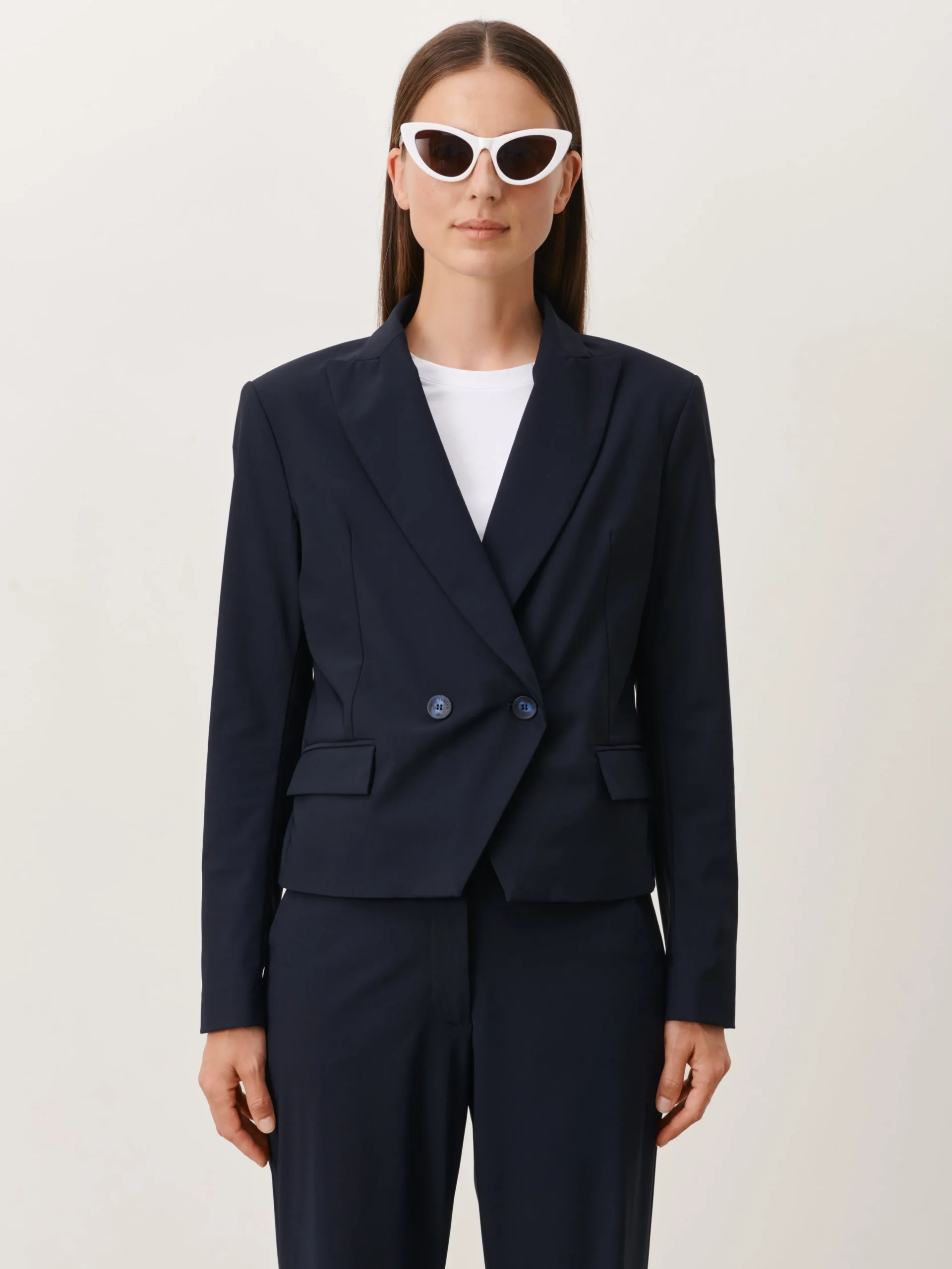 Bart Blazer: Embrace contemporary style with the Bart Blazer, crafted from heavy tech jersey. The relaxed short fit and double-row fastening bring a modern aesthetic to your wardrobe. The stretchy, wrinkle-free fabric adds comfort and convenience to your look. The model is 1,79 cm tall and wearing size S.
