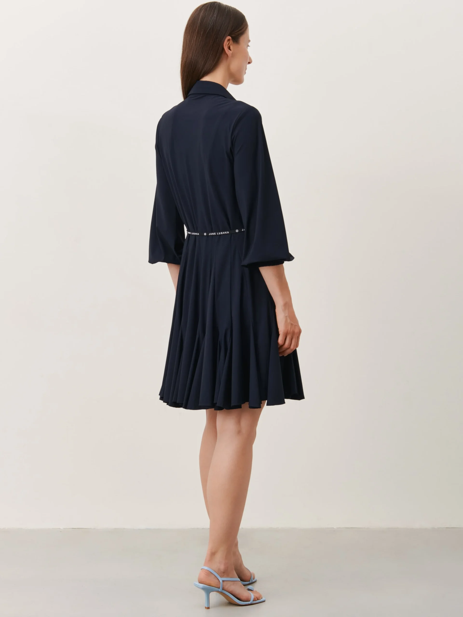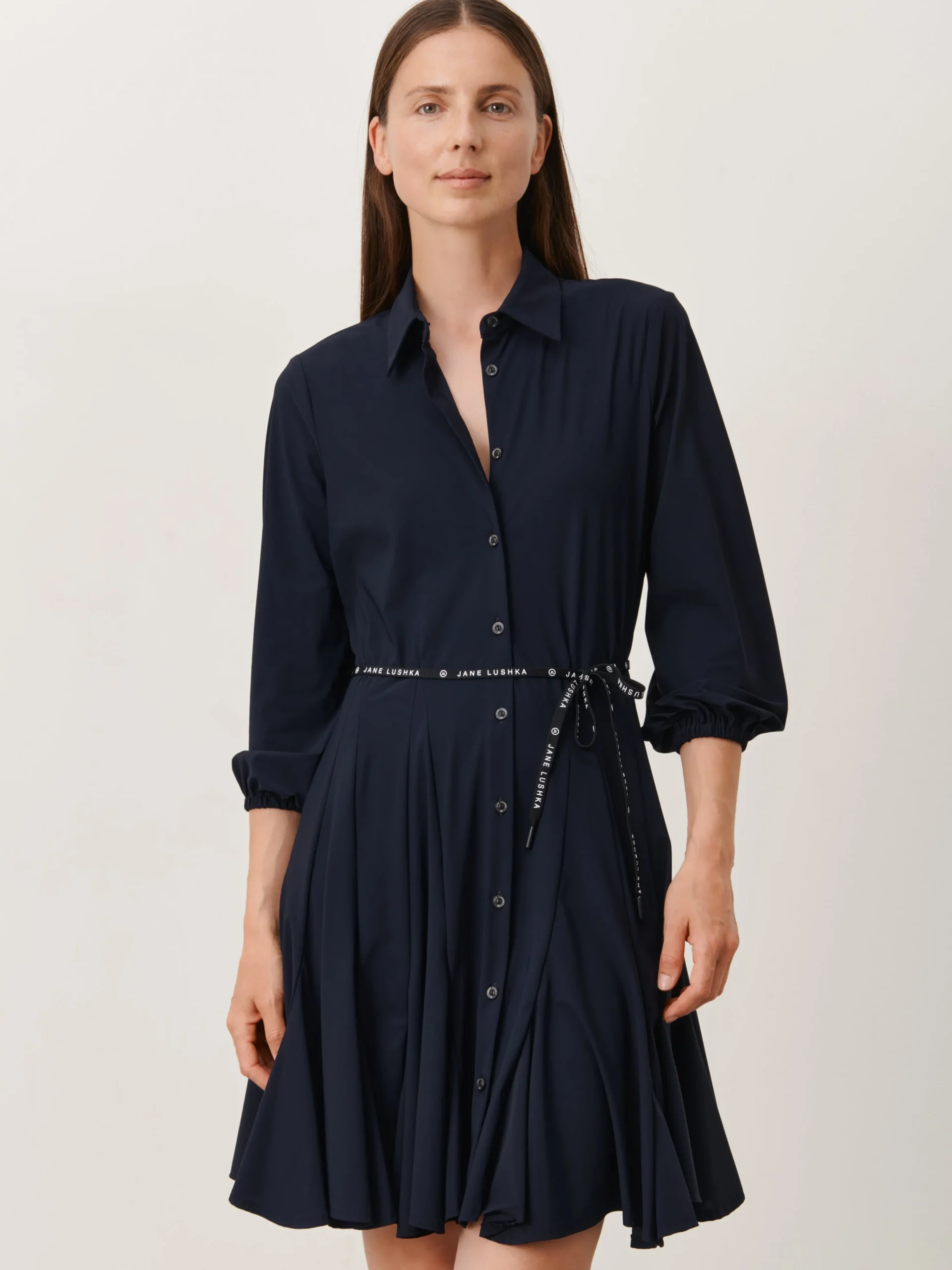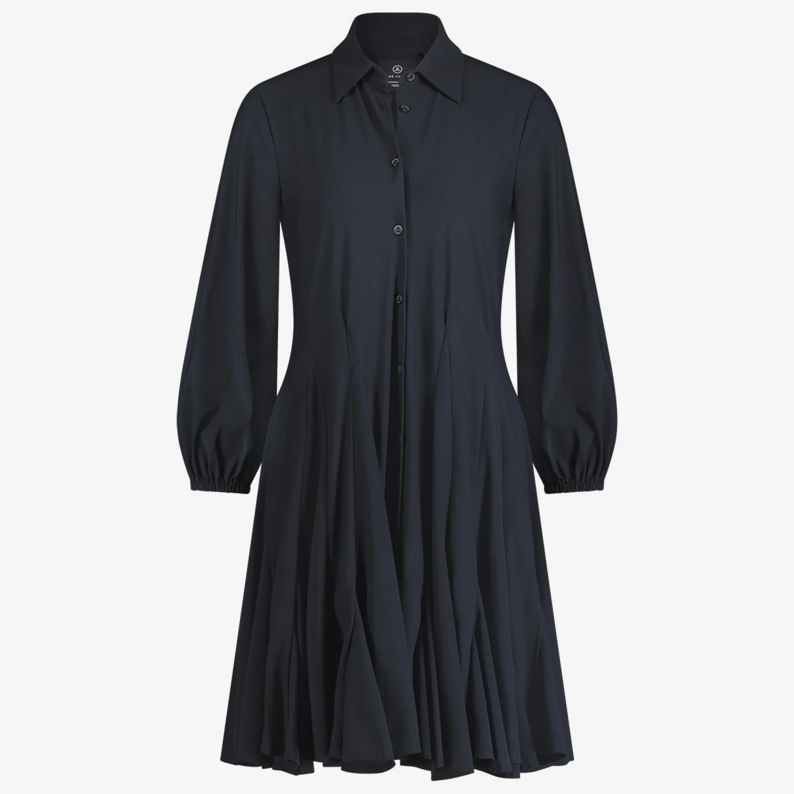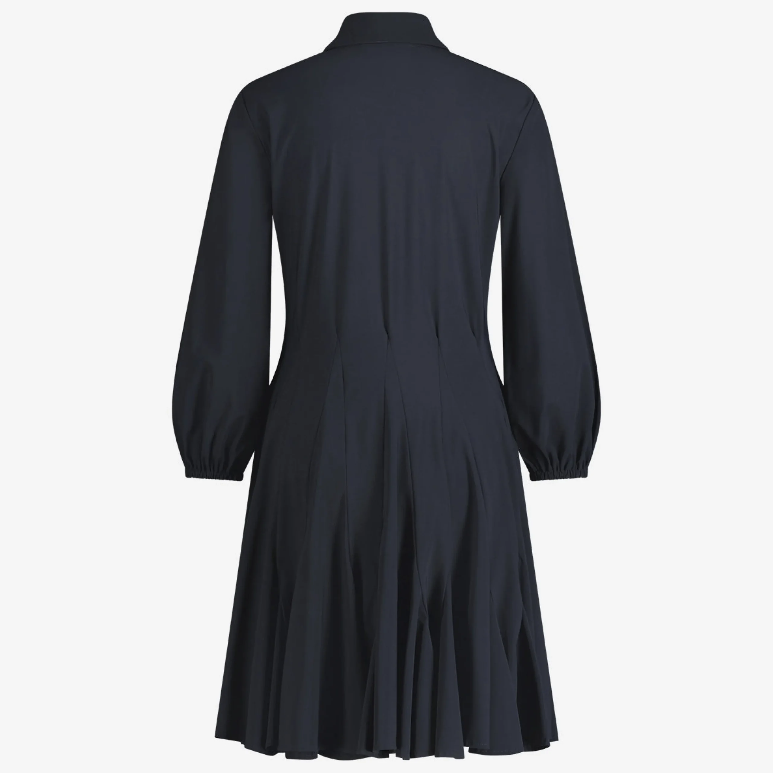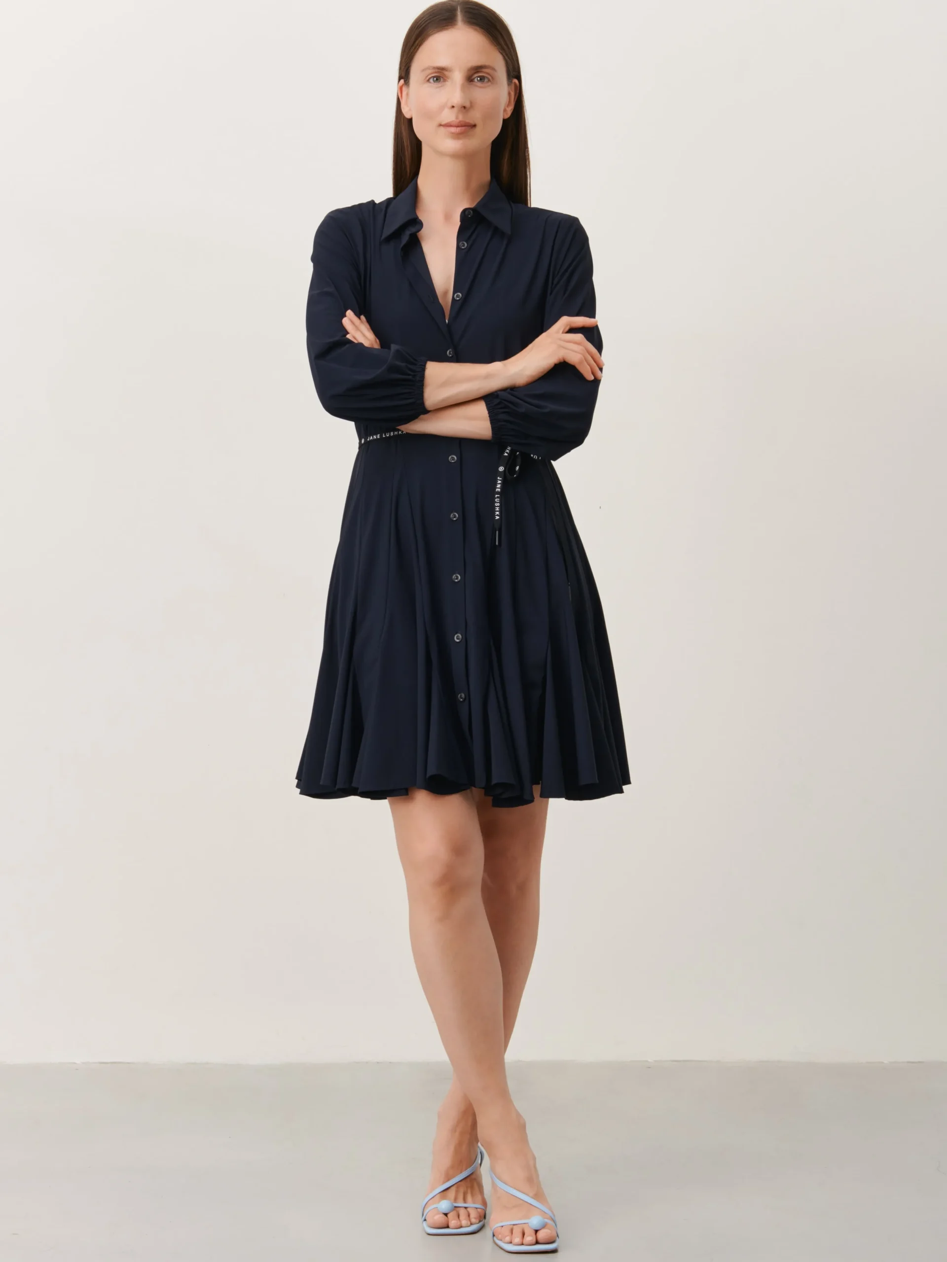 Revel in comfort and style with the Dio dress, a chic ensemble crafted from light stretch technical jersey. This dress features a row of buttons in the front, adding a classic touch. The flared lower part brings a playful and flattering silhouette, ensuring a graceful movement with every step. The model is 1,79 cm tall and wearing size S.