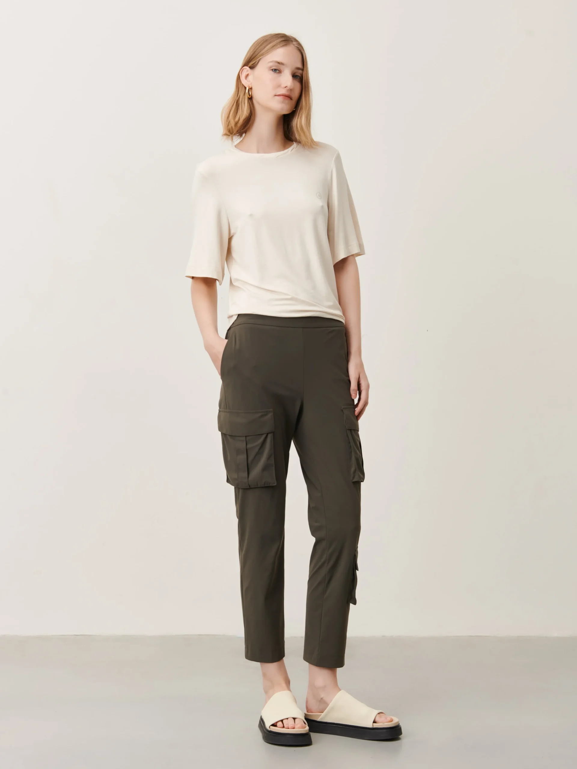 Frey Pants: Redefine casual sophistication with Frey Pants, crafted from wrinkle-free and supple Italian tech jersey stretch fabric. These cargo pants boast a tapered fit for a modern silhouette, while the flap pockets add a utilitarian touch. Elevate your wardrobe effortlessly with Frey Pants, designed for those who appreciate a seamless blend of comfort and contemporary style. The model is 1,79 cm tall and wearing size S.
