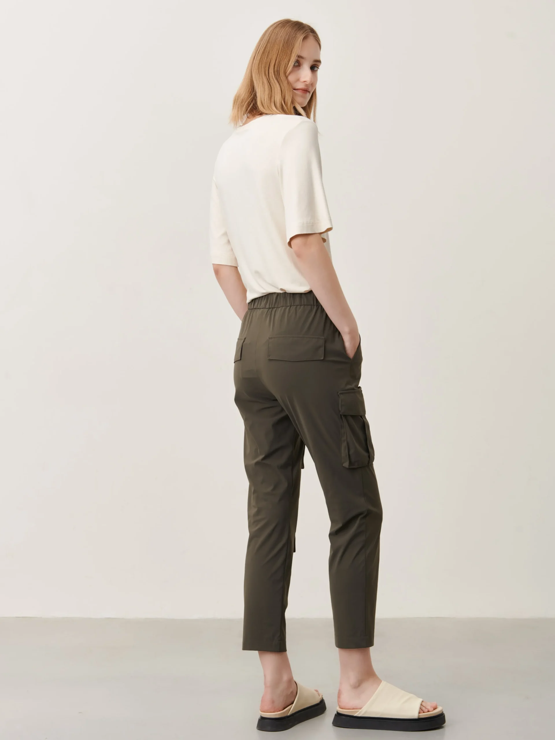 - Mid-rise elasticated waist