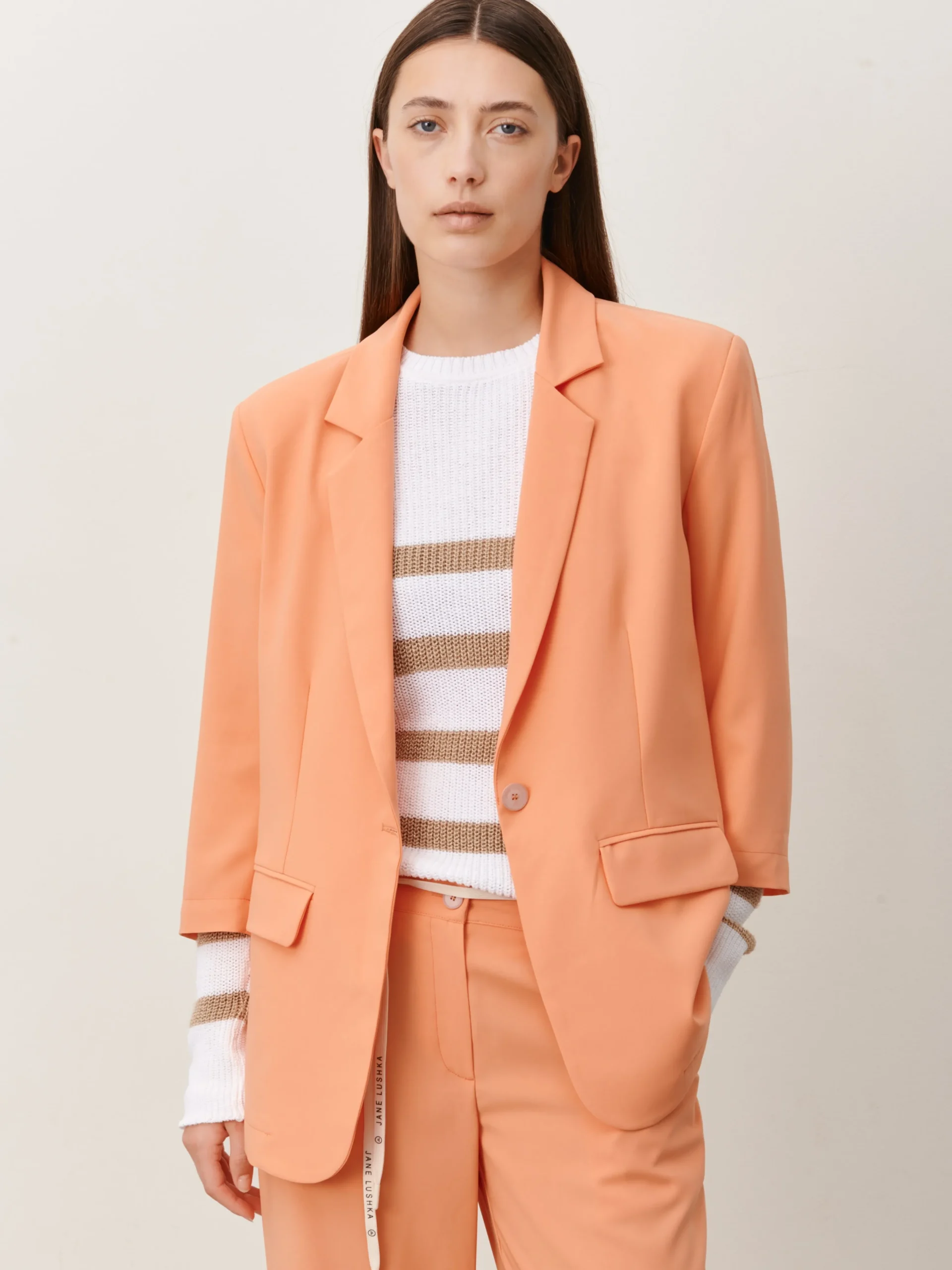 Fringe Blazer: Embrace a relaxed yet chic style with the Fringe Blazer, crafted from recycled poly. The semi-oversized fit and semi sleeves provide a comfortable and on-trend silhouette. Elevate your sustainable fashion game effortlessly with the Fringe Blazer, a versatile piece for a laid-back yet stylish look.The model is 1,79 cm tall and wearing size S.