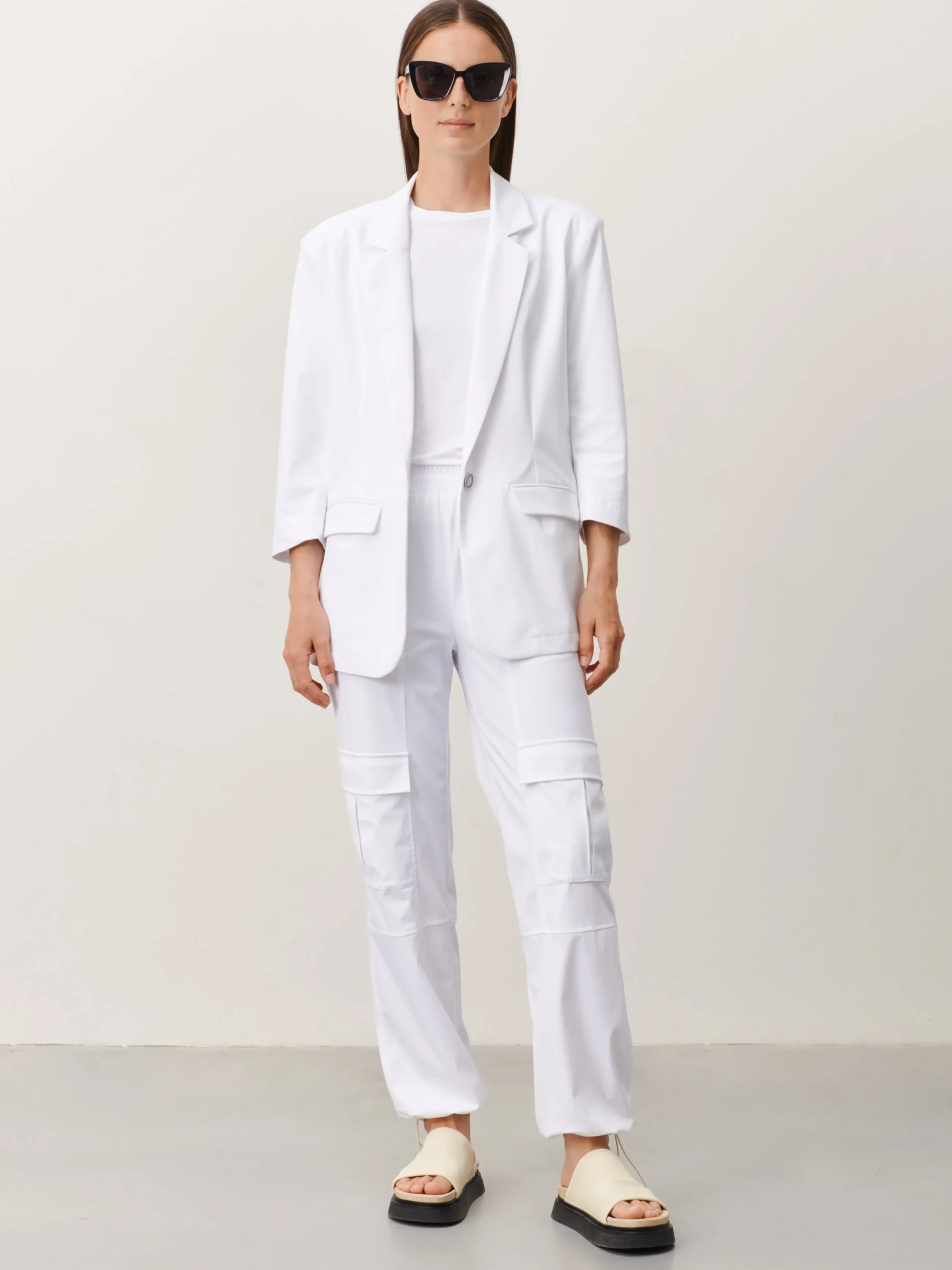 Fringe Blazer: Experience laid-back sophistication with the Fringe Blazer, crafted from heavy tech jersey. The relaxed fit and semi-oversized silhouette, paired with semi sleeves, offer a modern and comfortable look. This blazer is not only stylish but also practical with its wrinkle-free, easy-to-wash, and quick-drying material blend.The model is 1,79 cm tall and wearing size S.