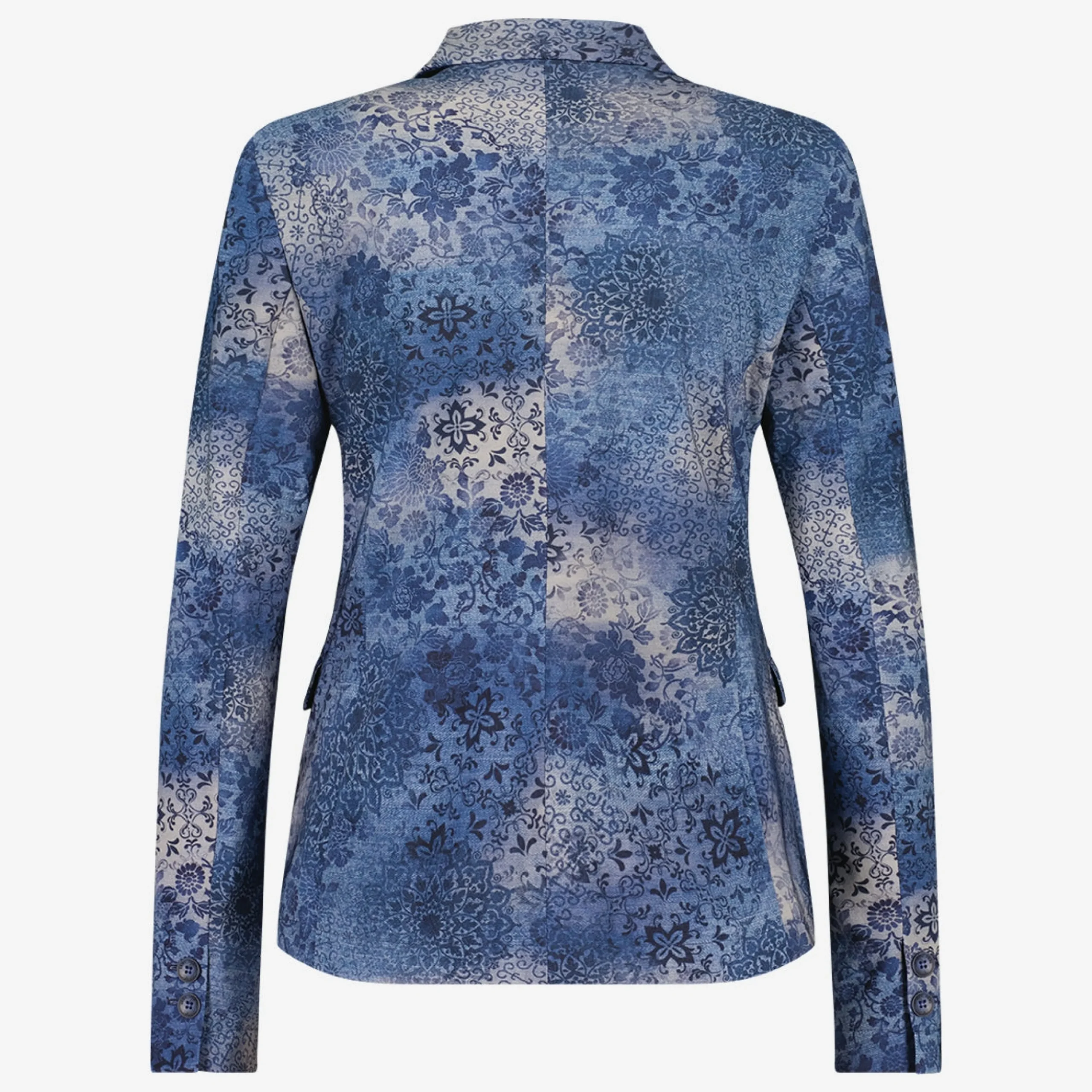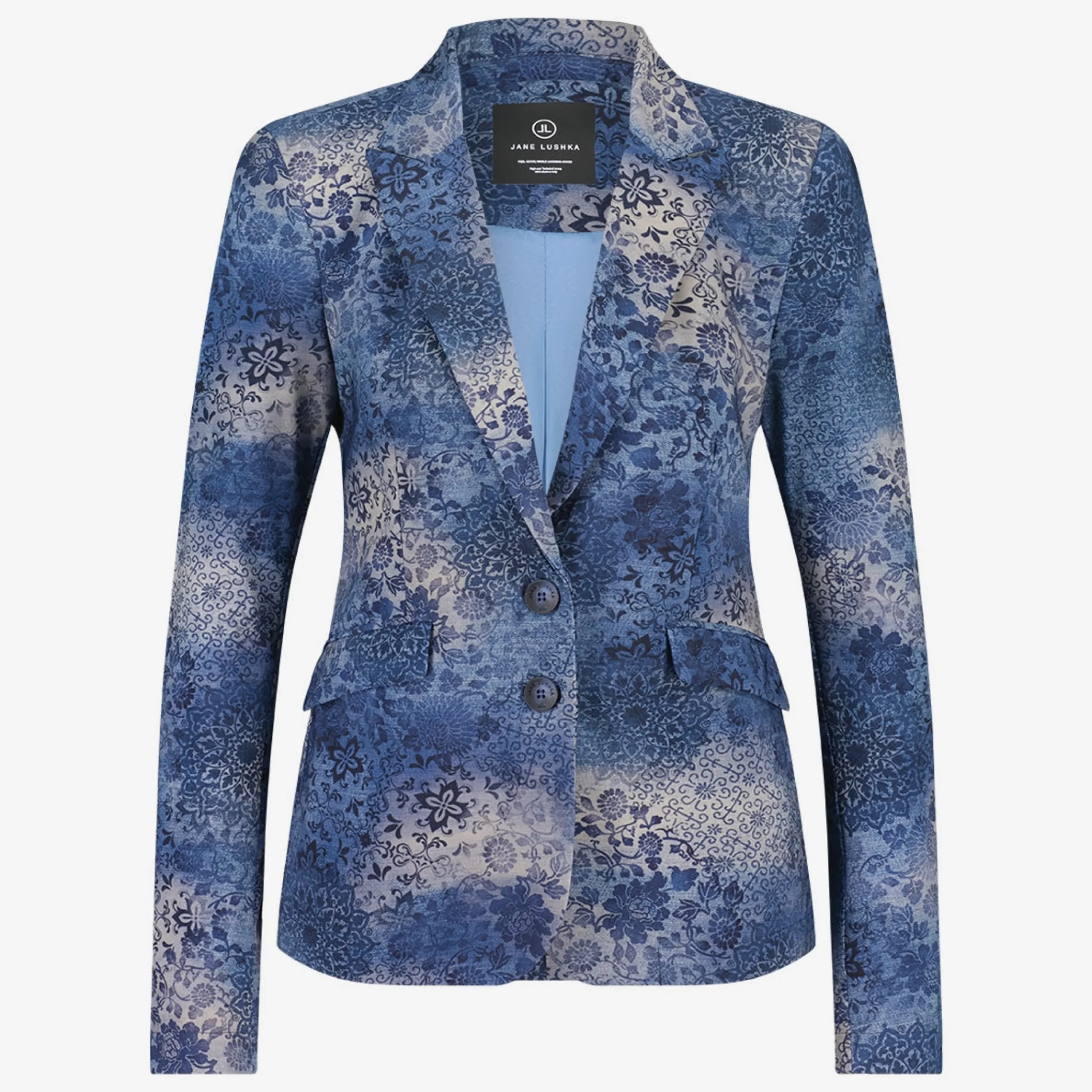 Hanna Blazer: Elevate your summer style with the Hanna Blazer, crafted from high-tech material for easy care and a wrinkle-free jersey quality. The tailored fit ensures a polished and modern silhouette, while the blue summer print adds a vibrant touch. Effortlessly blend convenience and chic design with the Hanna Blazer. The model is 1,79 cm tall and wearing size S.