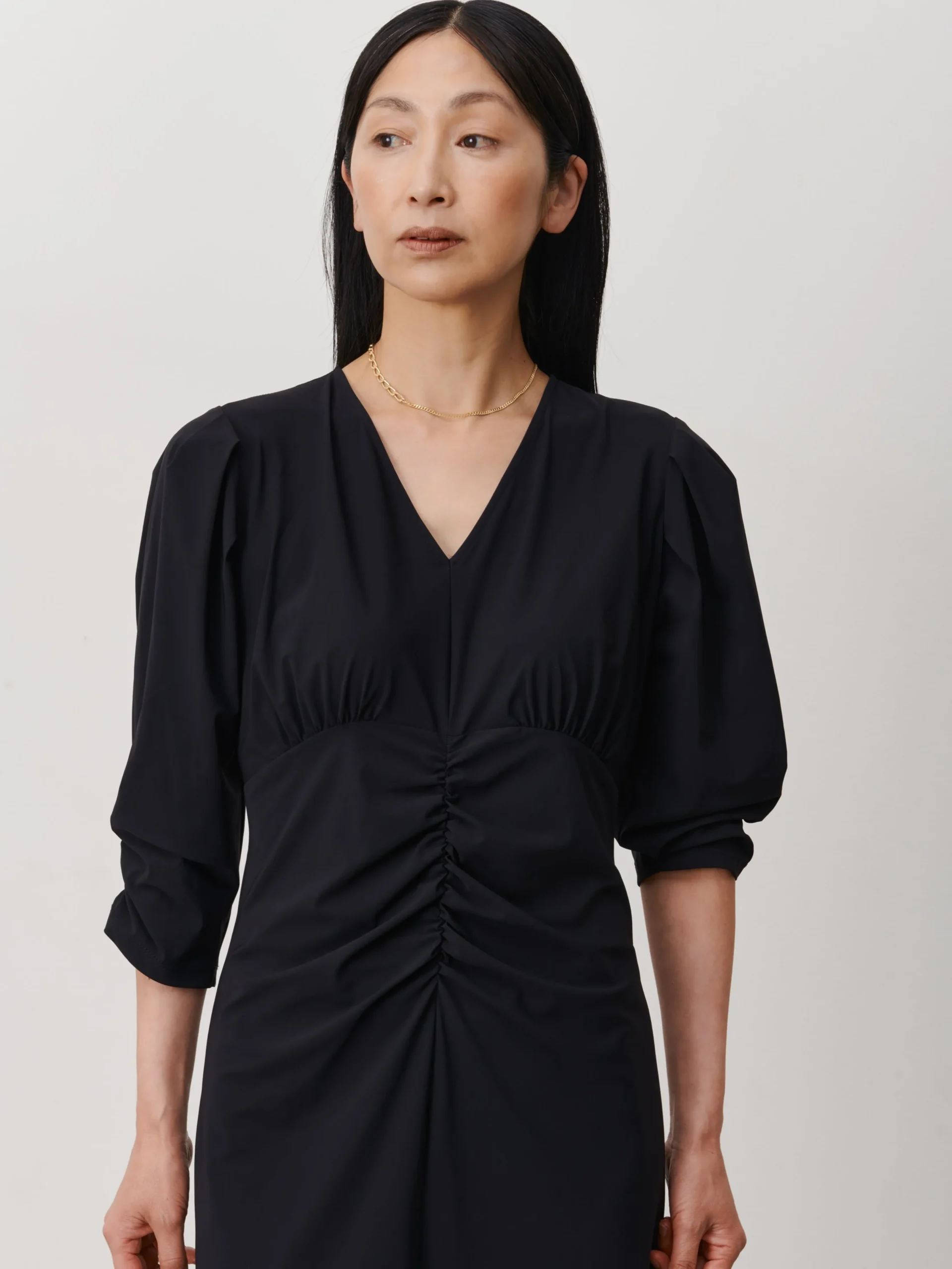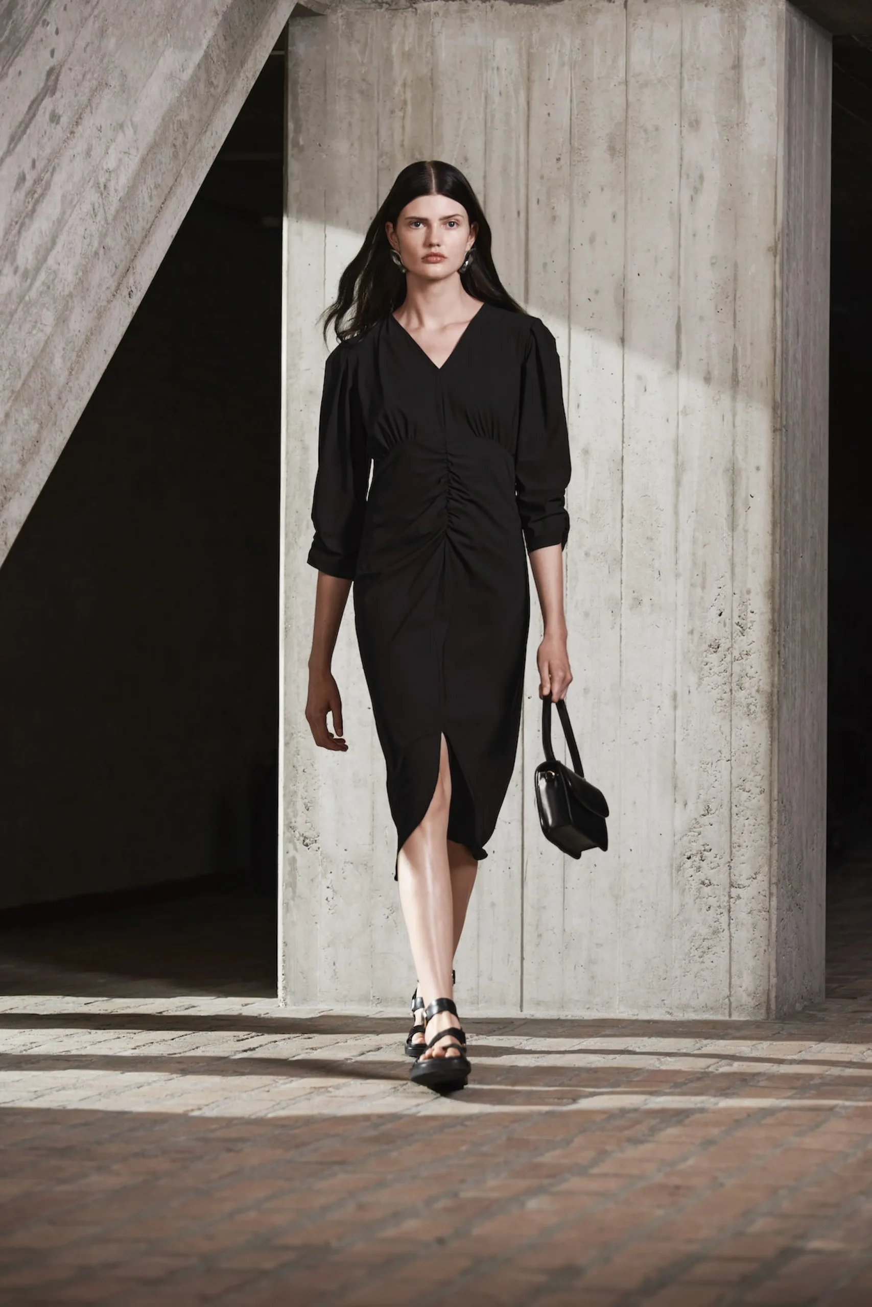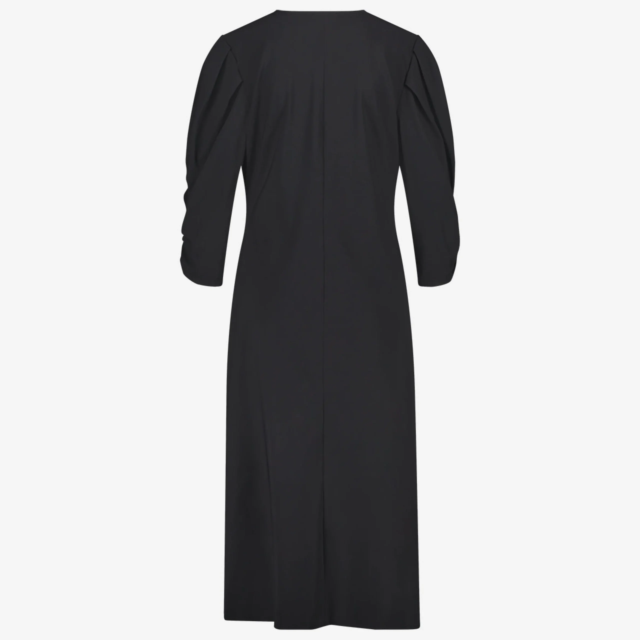 Experience modern sophistication with the Hilde dress, tailored from light stretch technical jersey. The regular fit ensures both comfort and style, making it a versatile wardrobe essential. The front detail adds a unique touch, creating a chic focal point to elevate your look. The model is 1,79 cm tall and wearing size S.