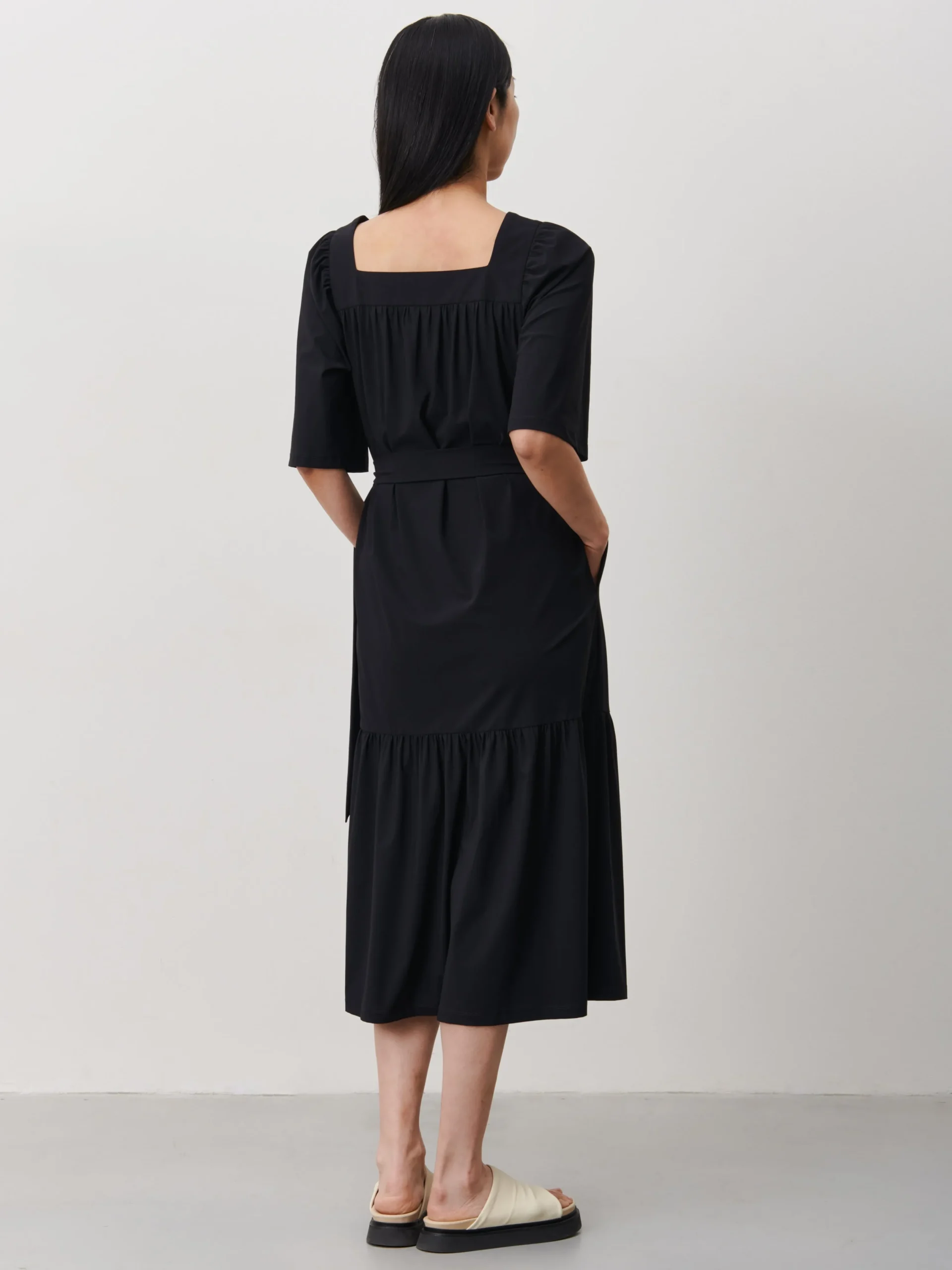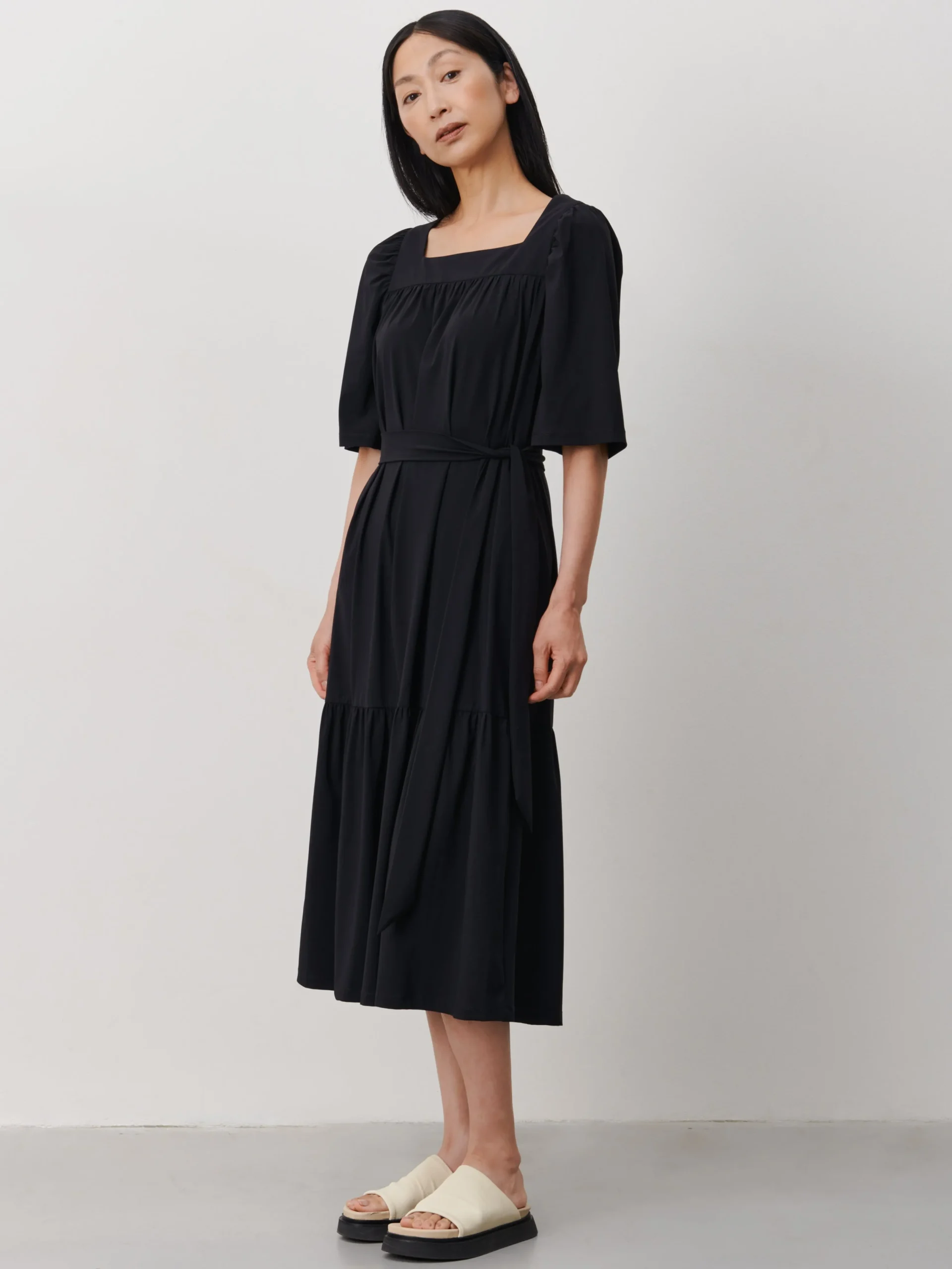 Embrace both comfort and style with the Jasmine dress. Crafted from light stretch technical jersey, this dress boasts a relaxed, loose fit for ease of movement and a laid-back feel. With its longer length, it exudes an effortless and modern charm, making it a versatile choice for various occasions. The model is 1,79 cm tall and wearing size S.