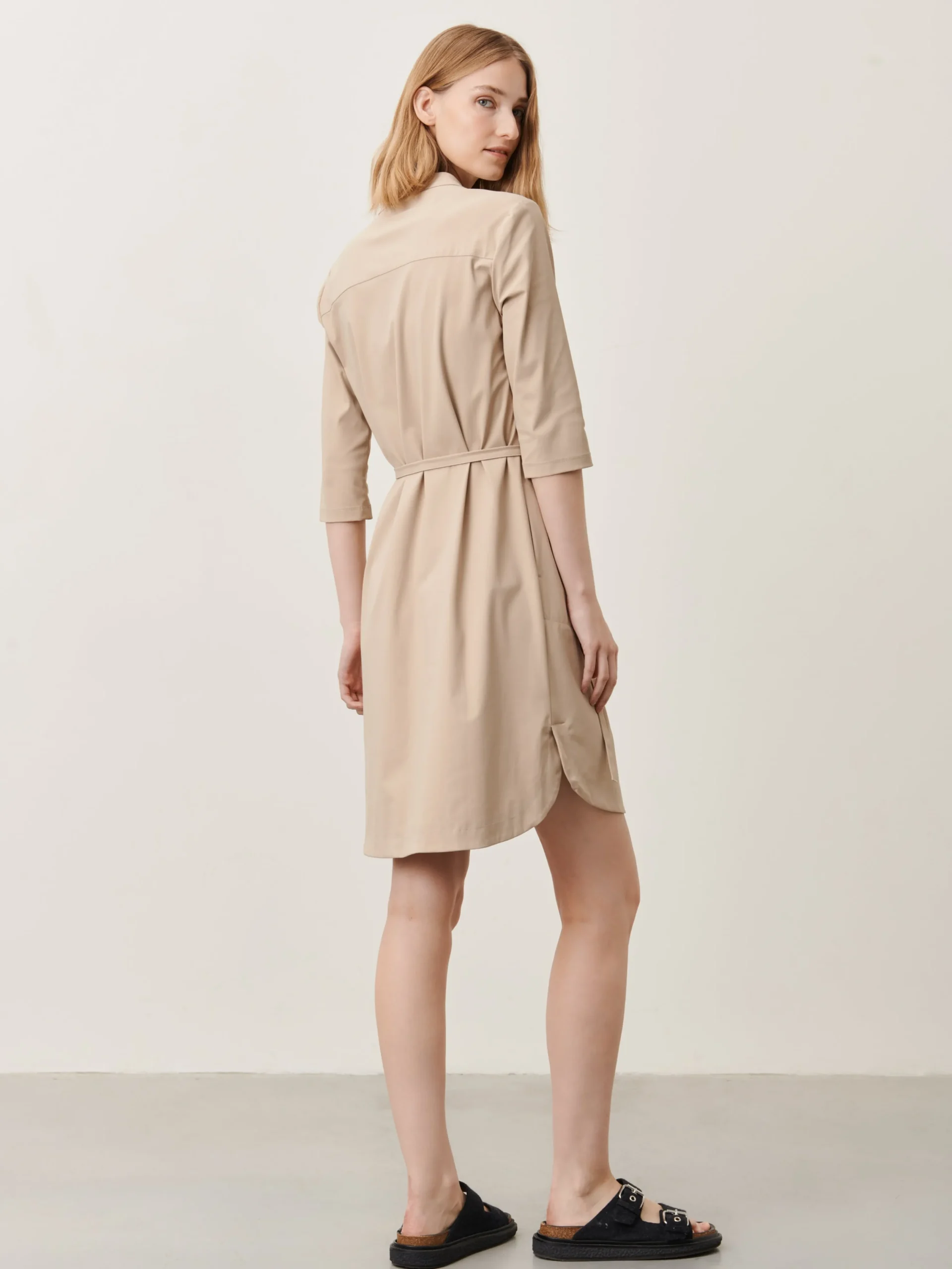 Unleash timeless elegance with the Kendal dress, meticulously crafted from heavy stretch technical jersey. Its classic silhouette offers both style and comfort, making it a versatile addition to your wardrobe. The sharp decorative neckline adds a touch of sophistication, elevating the Kendal Dress to a refined and chic ensemble for various occasions.The model is 1,79 cm tall and wearing size S.