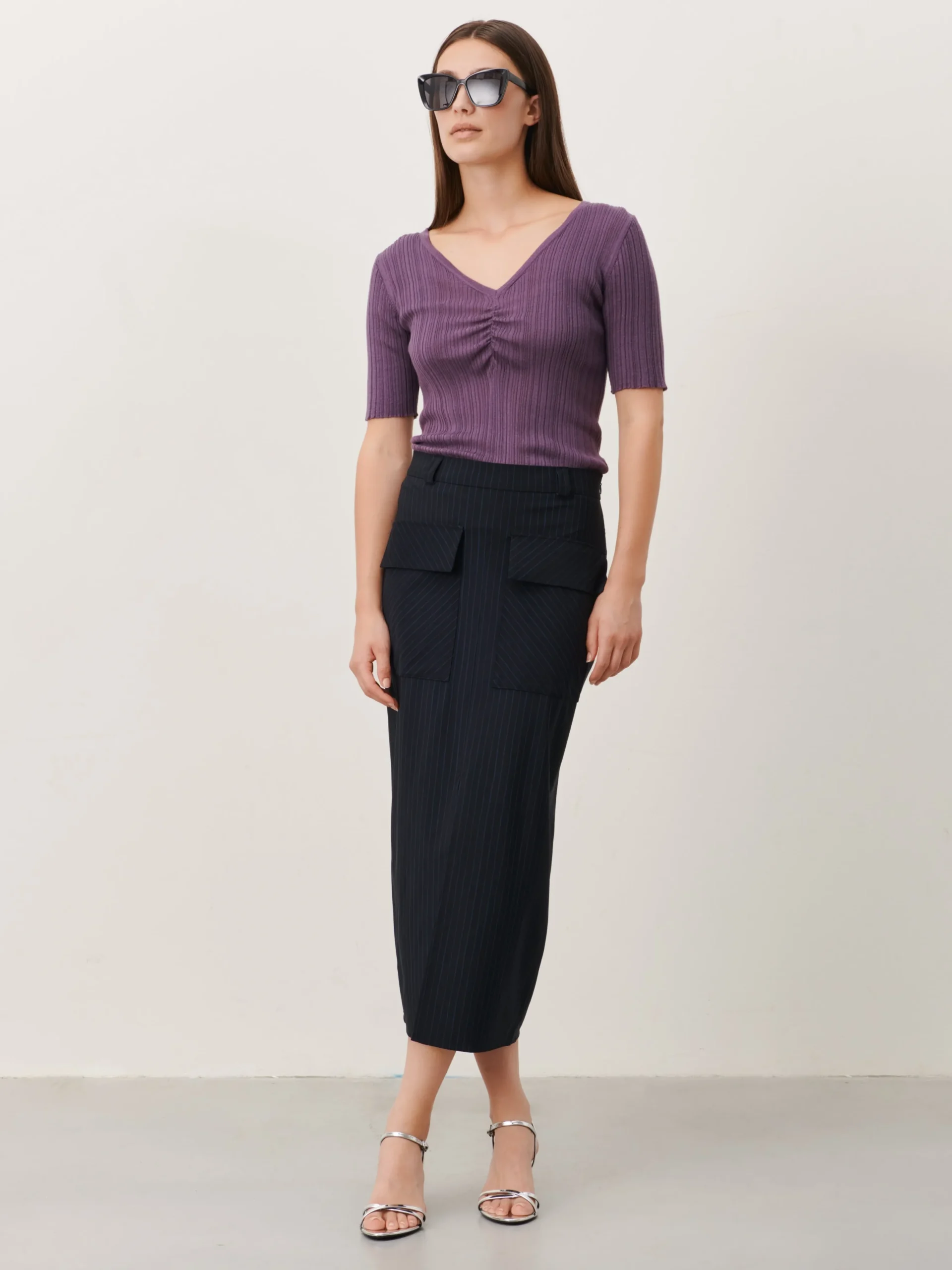 - front slit mid-length skirt