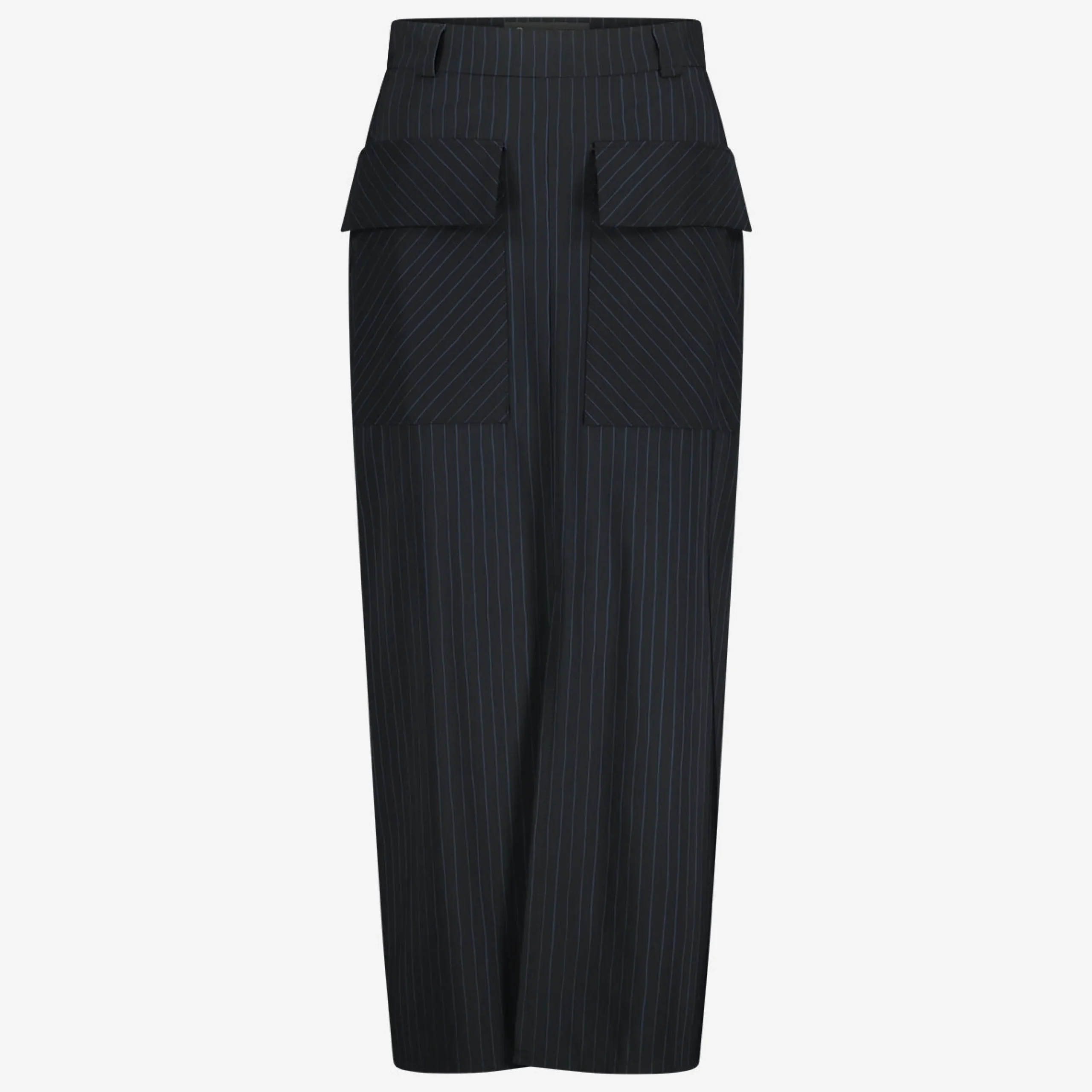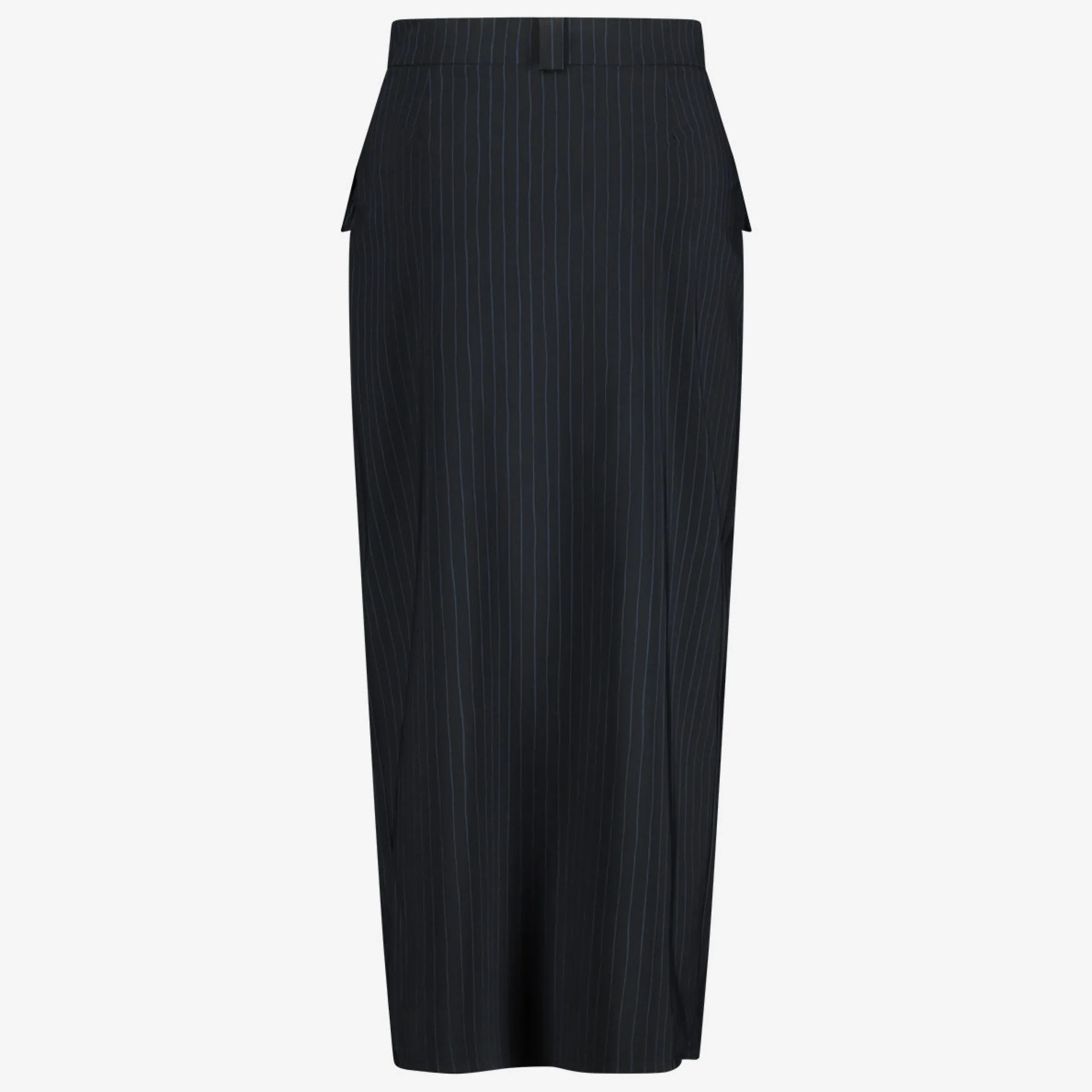 Make a statement with the Lara skirt, designed in a sleek high-tech jersey fabric adorned with a captivating black and blue linear print. This mid-length skirt boasts a stylish slit for added flair and movement. Featuring practical front deep pockets, it combines functionality with fashion. The straight hem and convenient side zip fastening ensure a polished finish, making the Lara skirt a standout piece for any occasion.The model is 1,79 cm tall and wearing size S.
