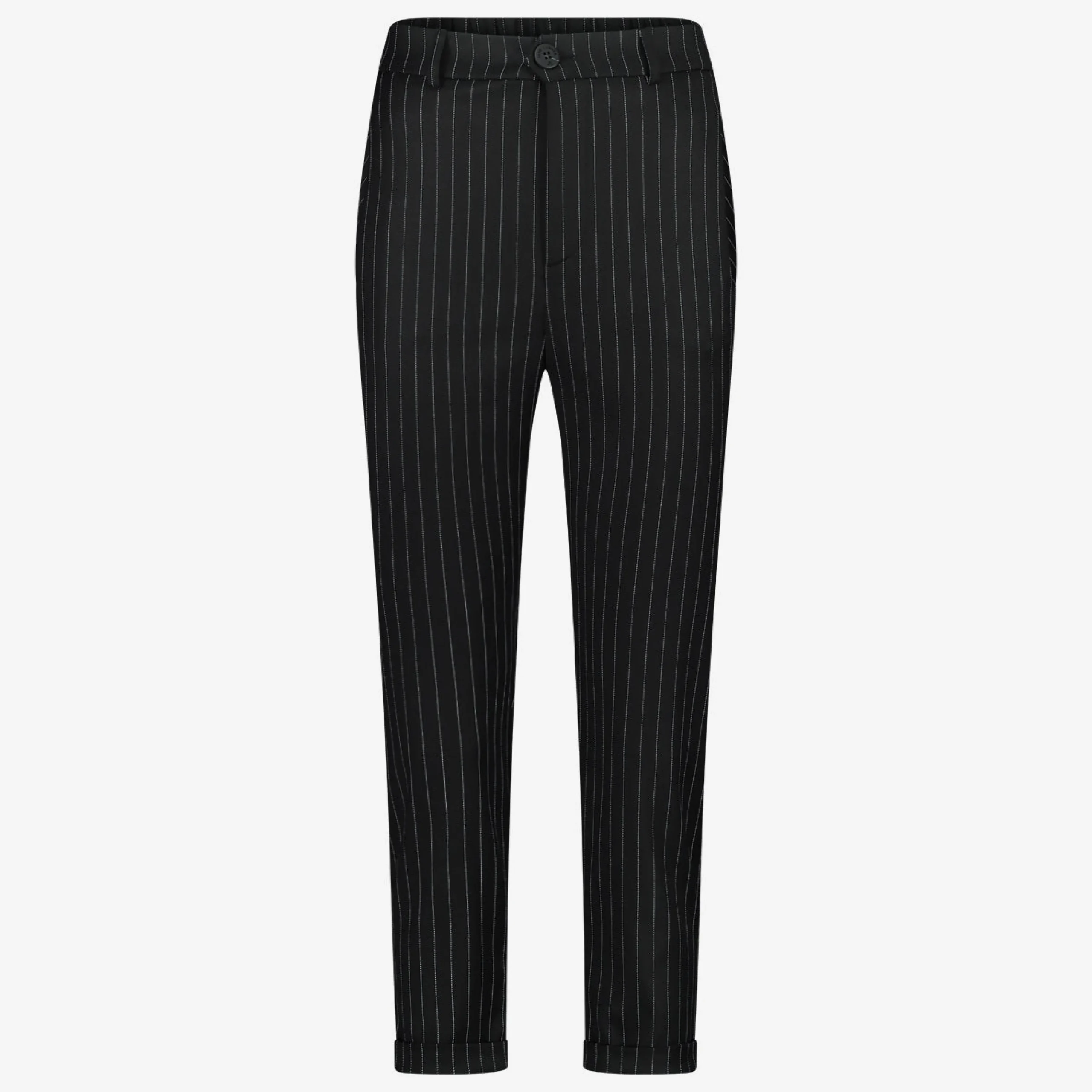 Lena Studio Pants: Elevate your studio-chic style with the Lena Pants, crafted from viscose and elastane. The chino fashion style adds a touch of sophistication, while the line print brings a modern edge to your look. Effortlessly blend comfort and fashion with Lena Studio Pants, perfect for a relaxed yet stylish appearance.The model is 1,79 cm tall and wearing size S.
