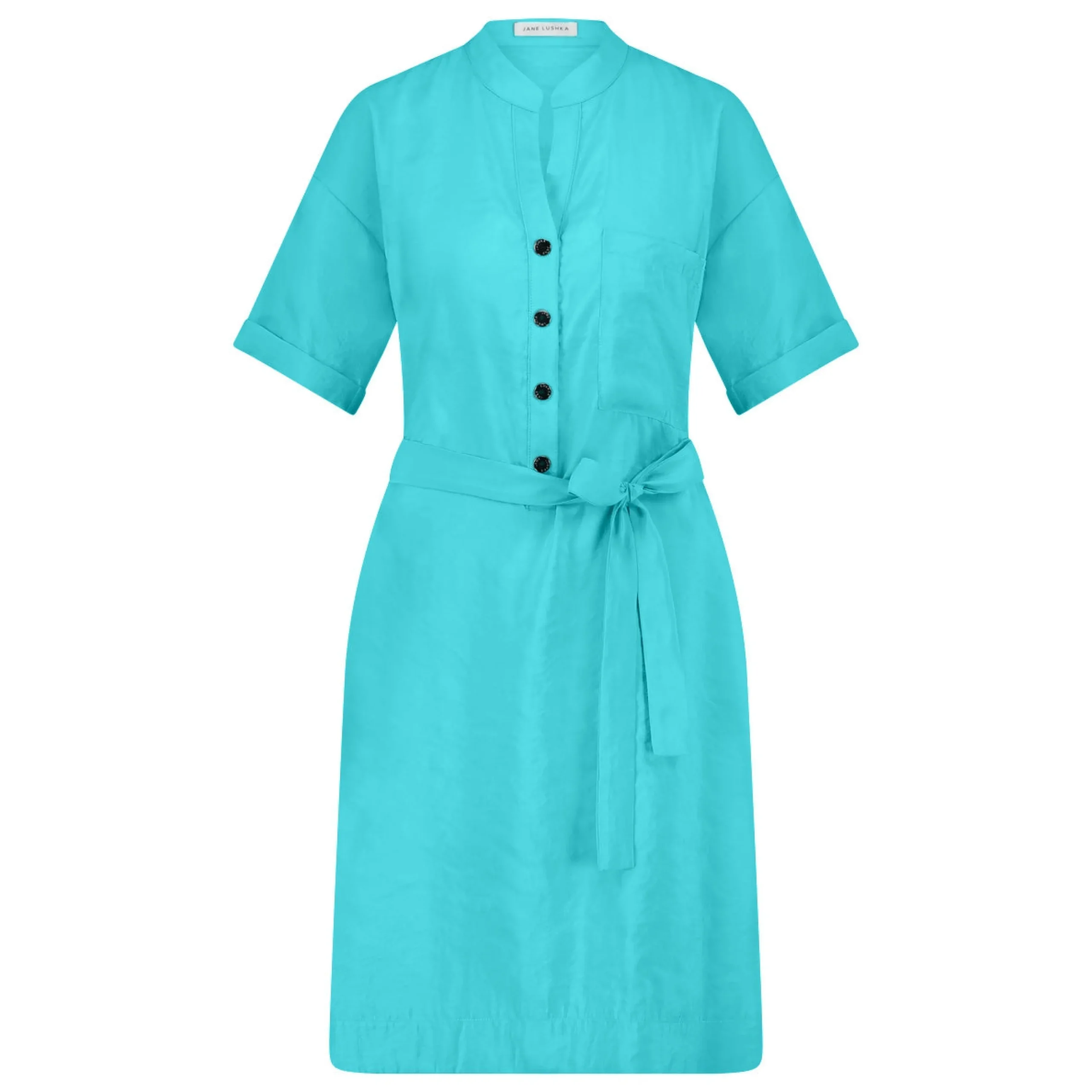 Embrace easy elegance with the Mayke dress crafted from luxurious cupro fabric. With its loose fit, this dress promises comfort without compromising style. Adorned in delightful summer colors, it radiates a vibrant and playful charm. The front buttons add a classic touch, while the short sleeves complete the look with a casual and breezy feel. Elevate your summer wardrobe with the relaxed sophistication of the Mayke Cupro Dress.The model is 1,79 cm tall and is wearing size S.