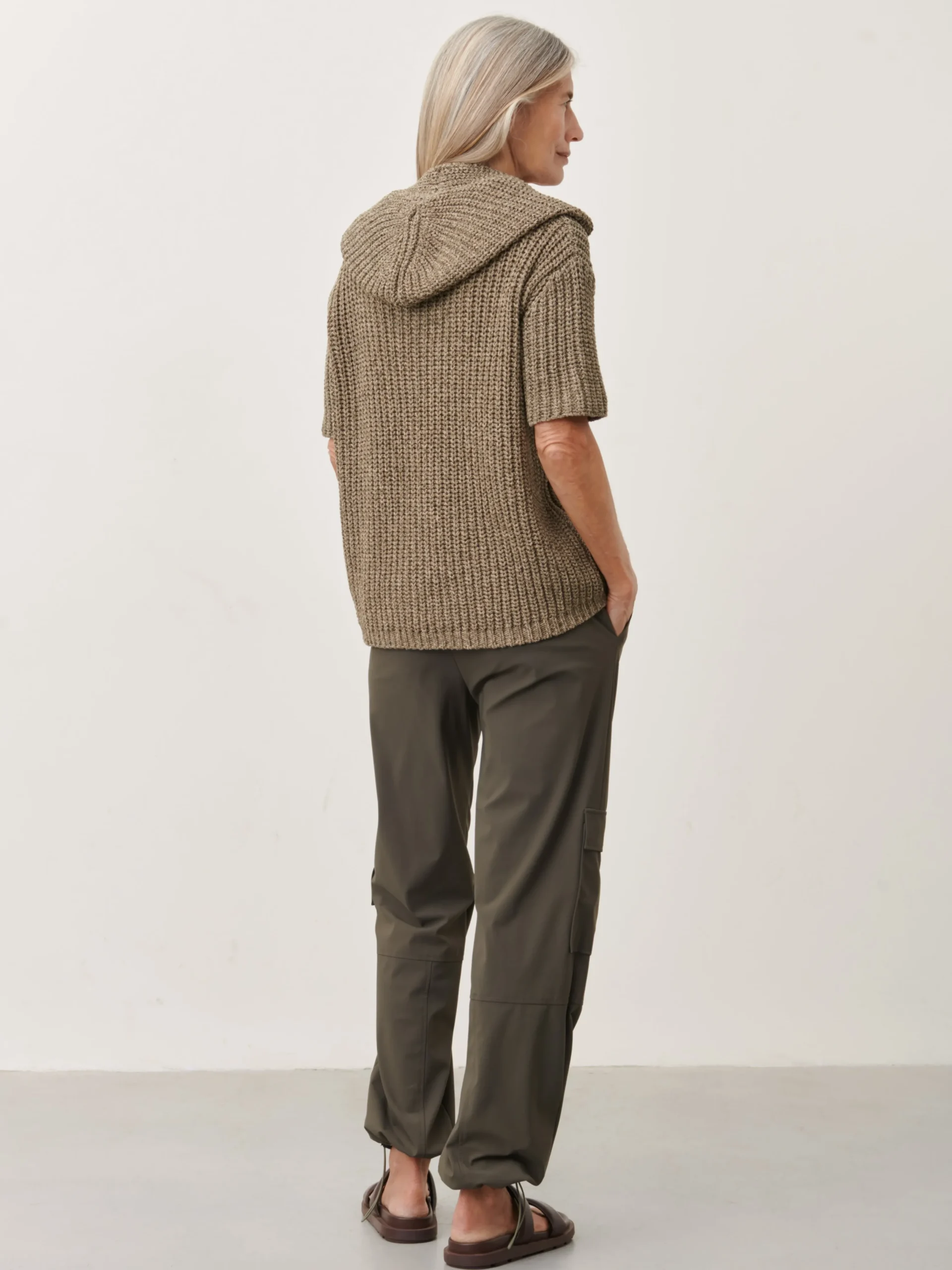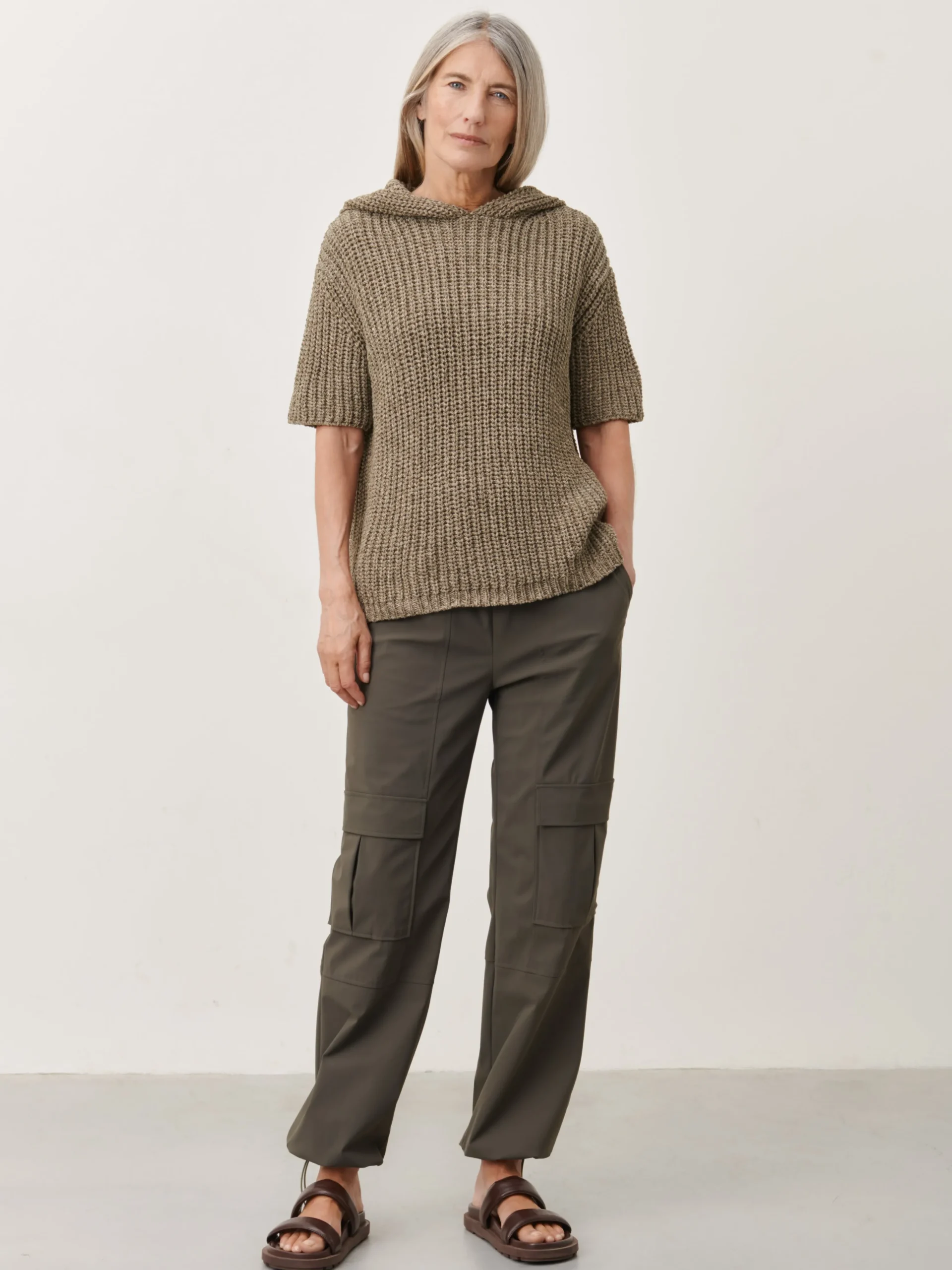 Maria Pants: Experience modern comfort and style with Maria Pants, crafted from high-tech Italian jersey. These cargo pants feature a mid-rise and a narrow elasticated waistband for a contemporary look. The front pockets add a touch of utility and practicality to your ensemble.The model is 1,79 cm tall and wearing size S.
