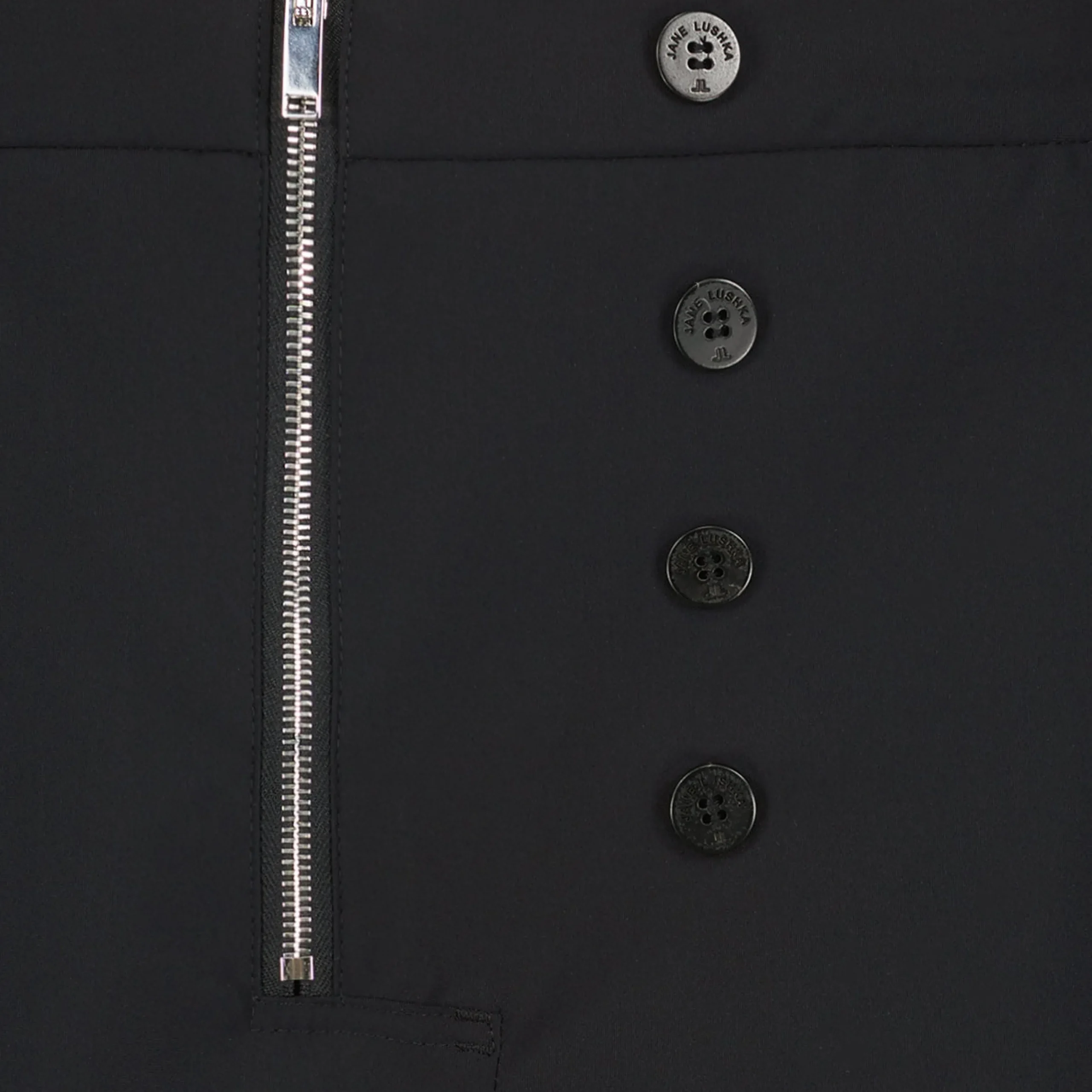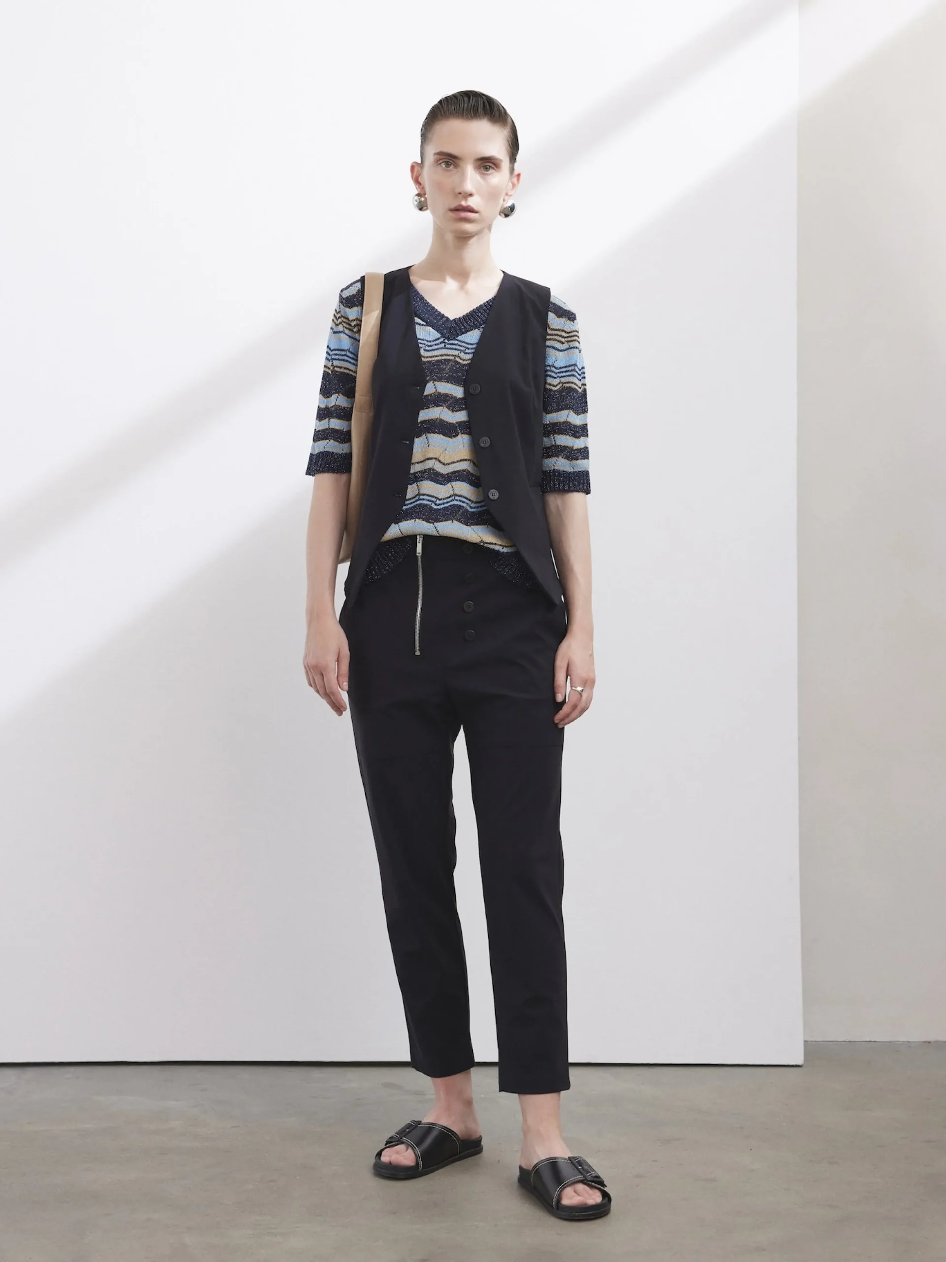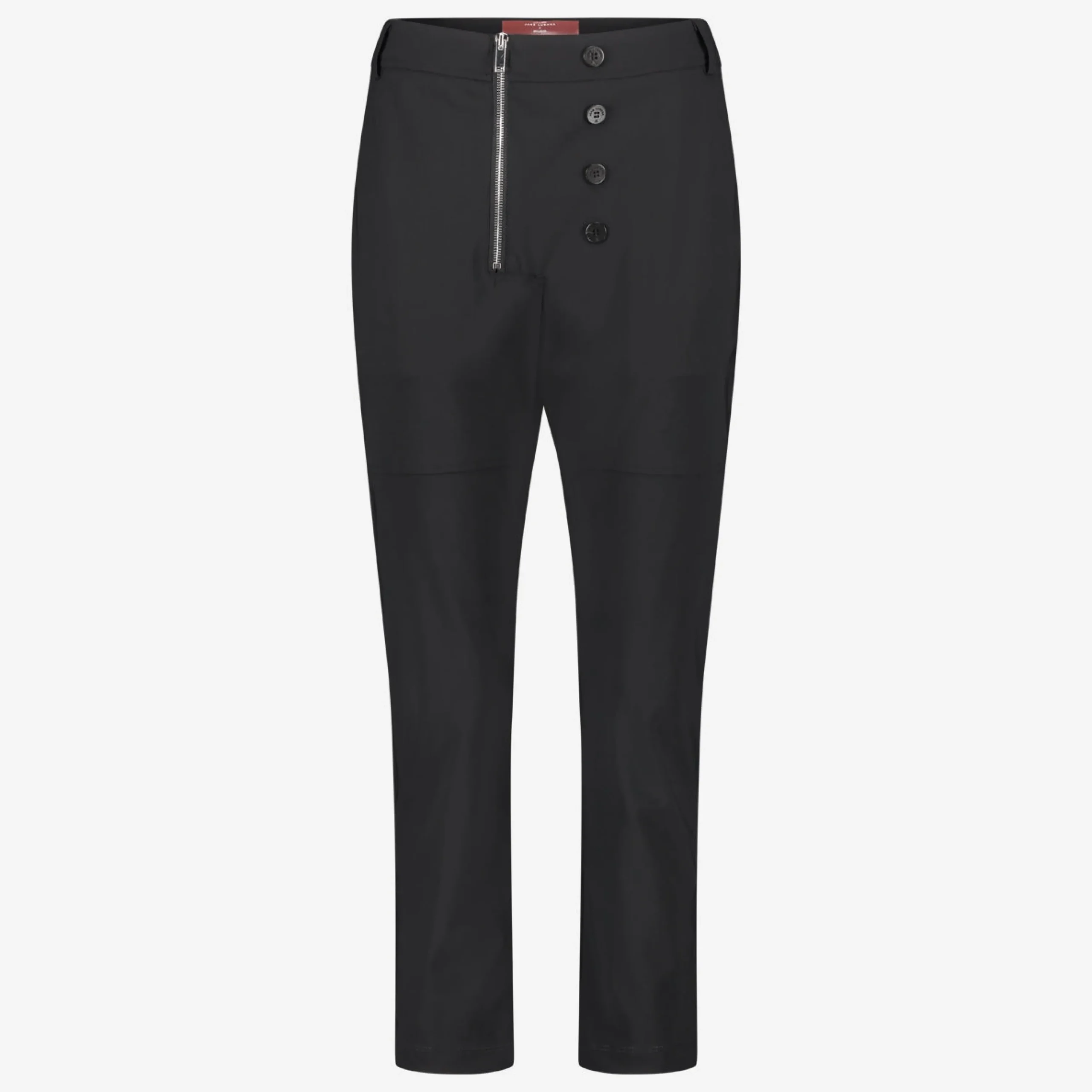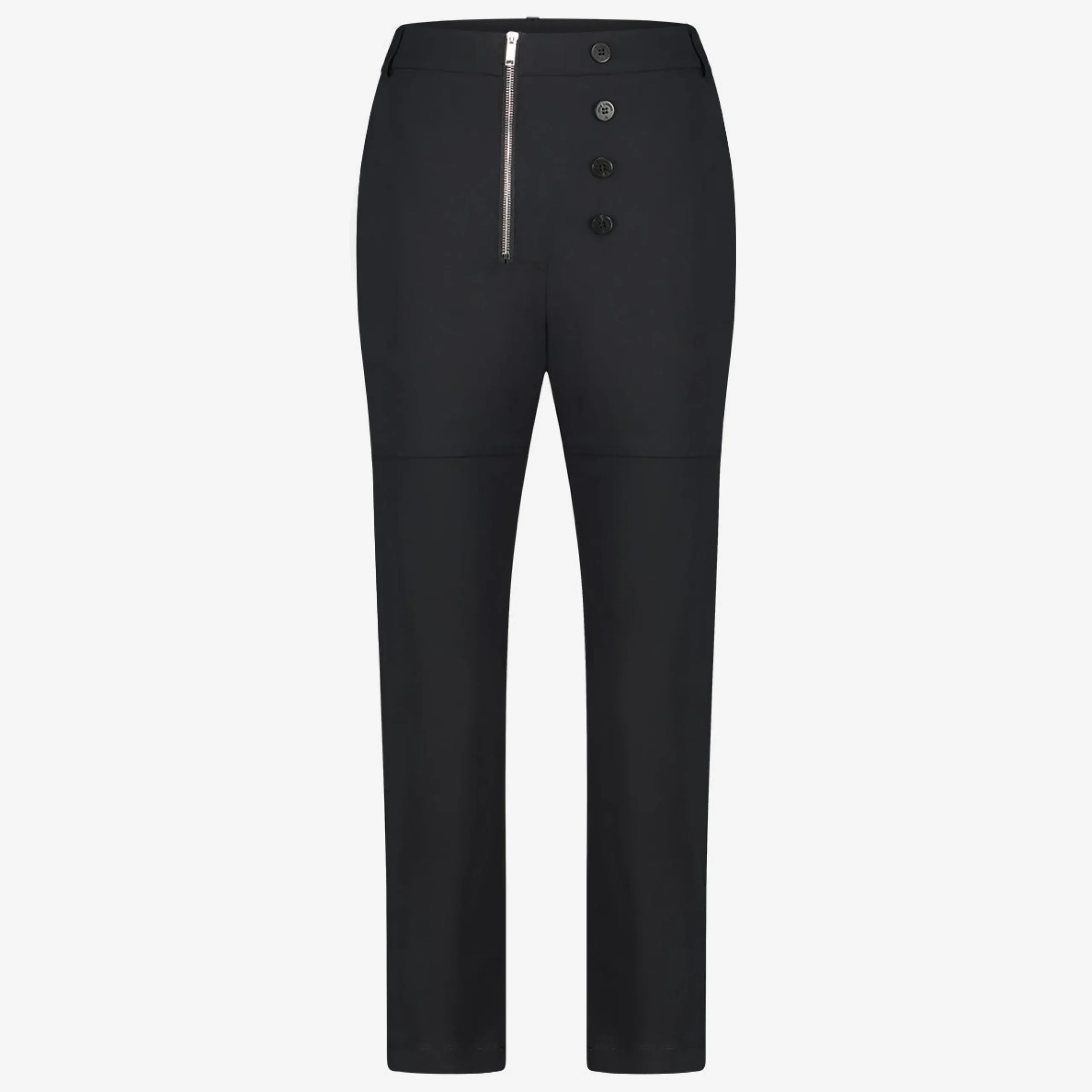 Miliana Pants: Elevate your style with the Miliana Pants from our Studio Collection. Crafted from high-tech jersey, these pants offer a sleek and modern aesthetic. The front details, a combination of a metallic zipper and buttons, add an edgy and contemporary touch. Embrace a fashion-forward look effortlessly with Miliana Pants, designed for those who appreciate the art of dressing with flair and innovation. The model is 1,79 cm tall and wearing size S.