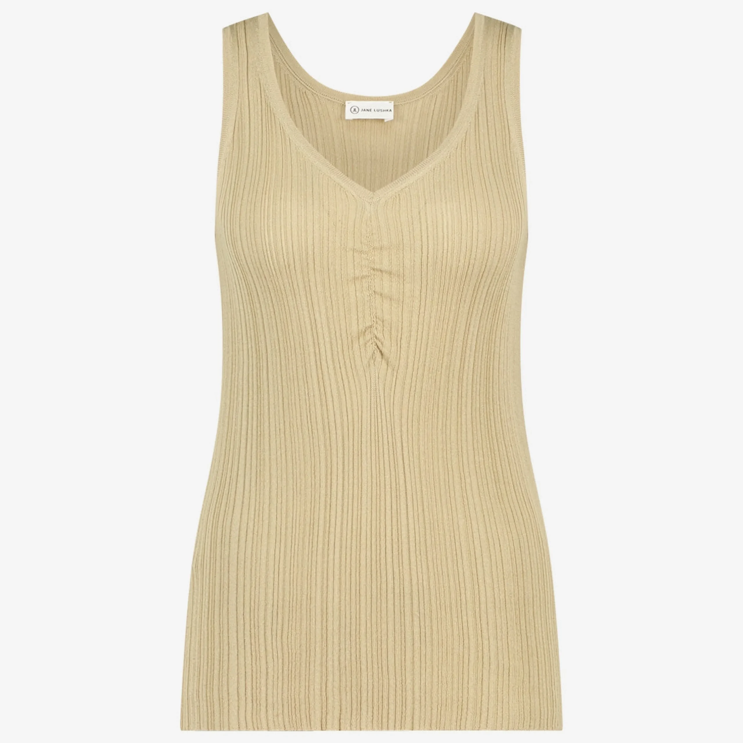 Narnali Vest: Embrace a blend of comfort and style with the Narnali Shirt. Crafted from a mix of cotton and viscose, this top features a V neck, sleeveless, and a slim fit for a modern silhouette. Perfect for various occasions, the Narnali Top combines versatility with a touch of sophistication, making it an essential addition to your wardrobe. The model is 1,79 cm tall and wearing size S.