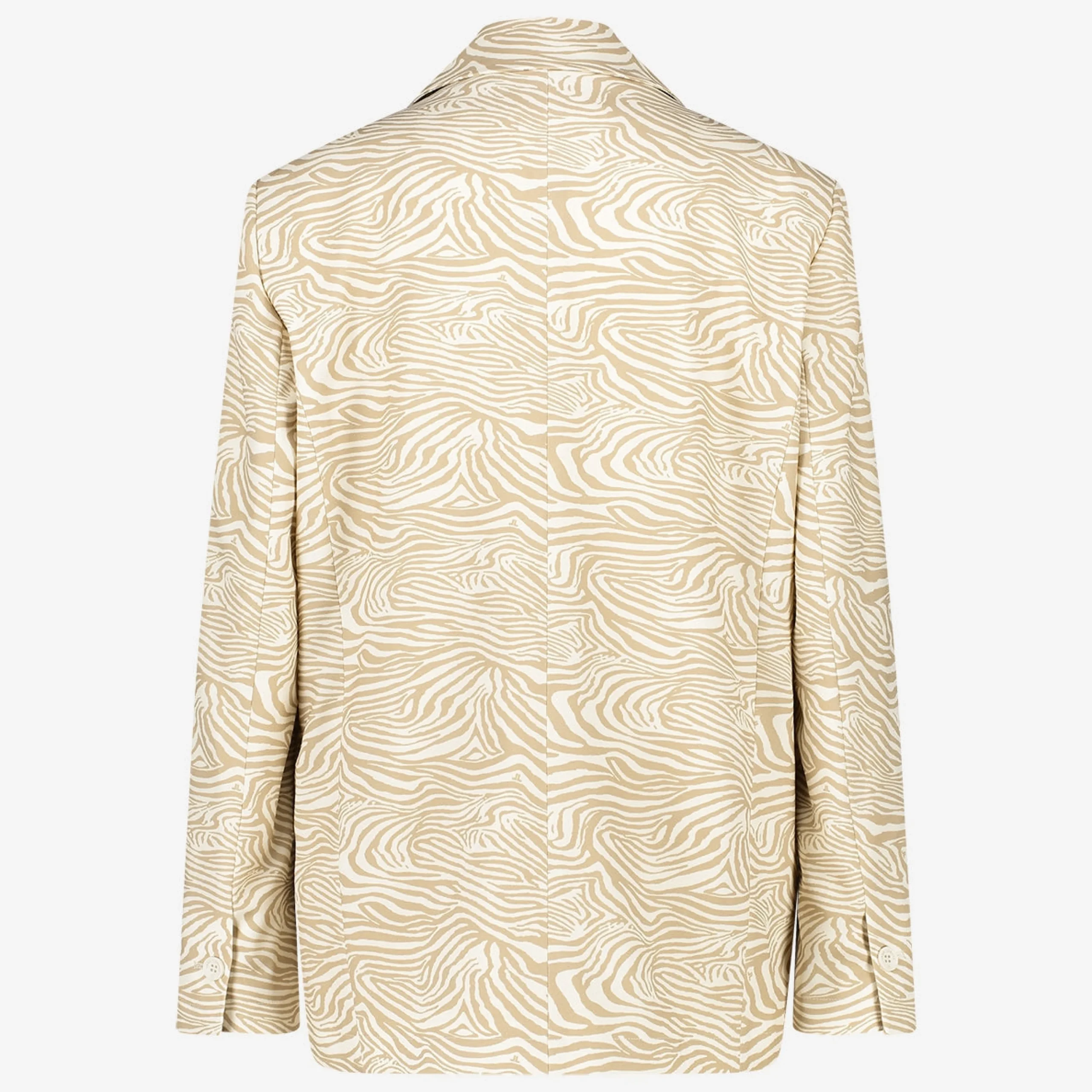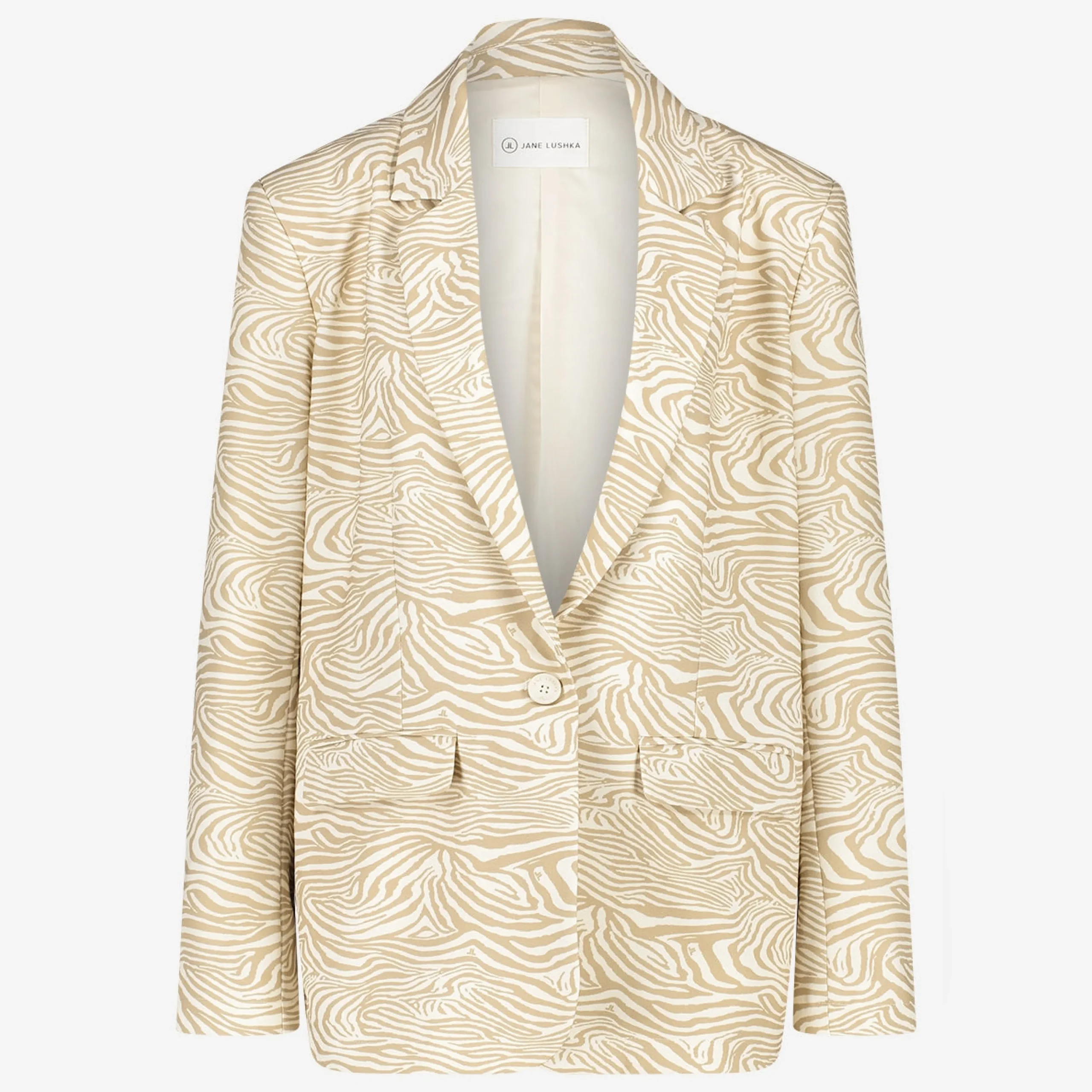 This blazer Plazza is a fashionable and sustainable choice for summer wear, with a loose fit that strikes a balance between sporty and elegant styles. Made from recycled polyester and elastane, it offers both durability and comfort, while the flower print adds a unique touch to the design. Whether you’re attending a business meeting or a casual gathering, this blazer can be dressed up or down to suit any occasion.