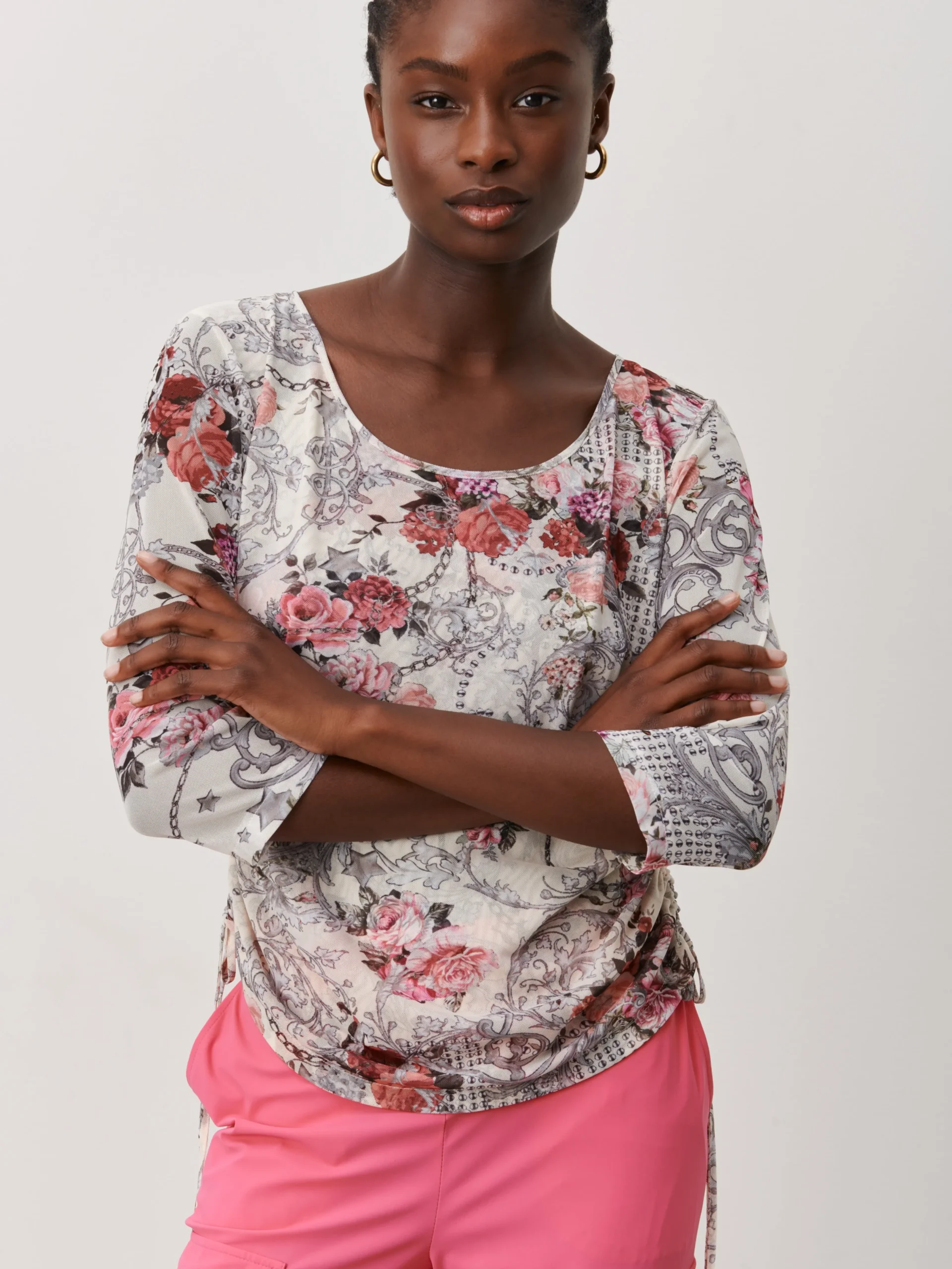 Rosa Top: Embrace a touch of allure with the Rosa Top, crafted from a printed mesh fabric. The deep V-neck adds a feminine touch, while semi sleeves provide a comfortable fit. Side links add a hint of detail, contributing to the top’s elegant charm. The straight hem completes the look, making the Rosa Top a versatile choice for various occasions. Elevate your style with this chic and contemporary piece.The model is 1,79 cm tall and wearing size S.