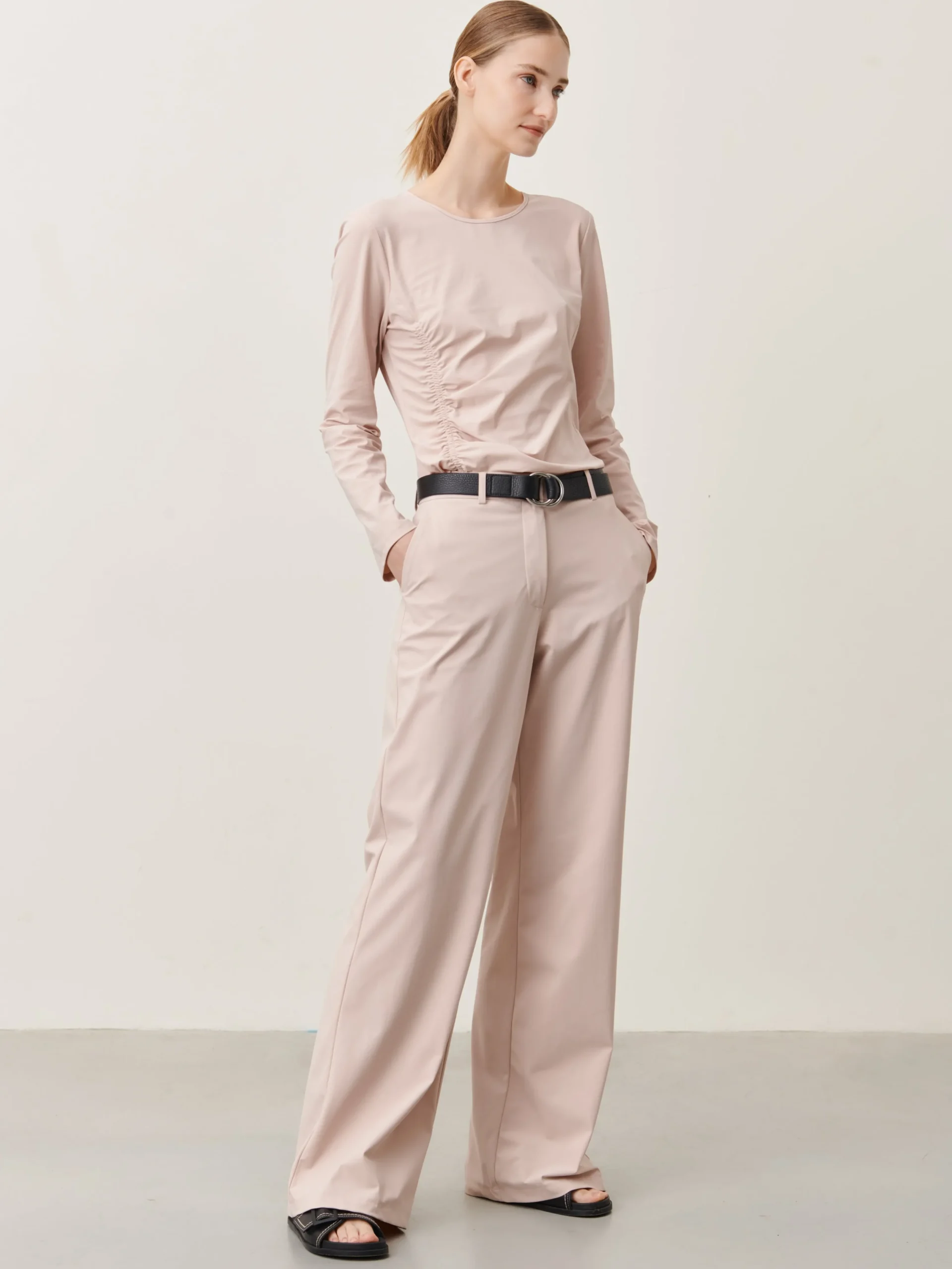 Scarlet Top: This basic top is made from lightweight high-tech jersey, ensuring comfort and ease of care. With its round neck and long sleeves, it offers a versatile and timeless style. The front adjusting part adds a functional element, allowing you to customize the fit to your preference.The model is 1,79 cm tall and wearing size S.