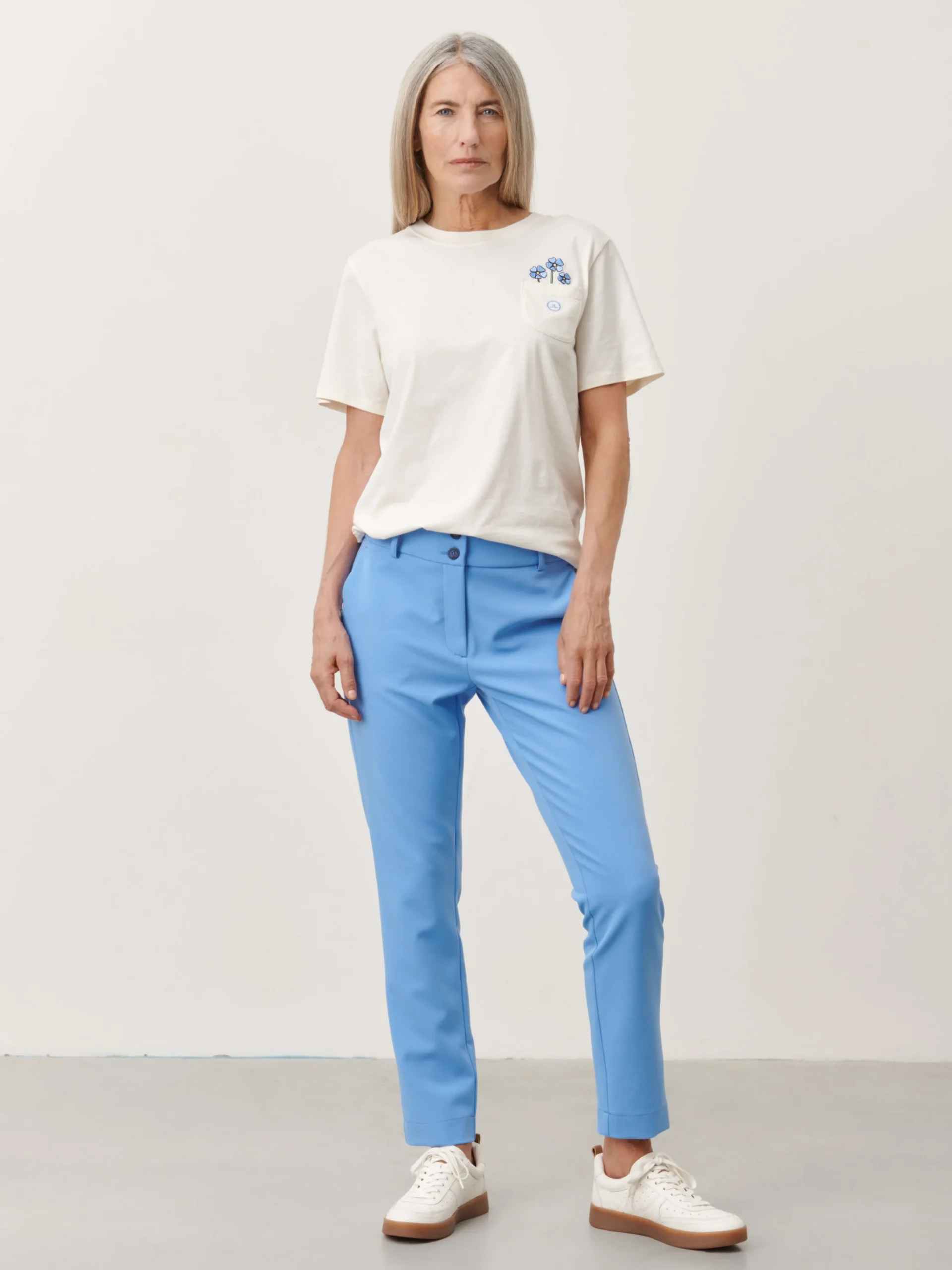 This T-shirt, named Turiya, is made of eco-friendly organic cotton, providing a soft and comfortable feel against the skin. The shirt is designed with a charming floral print that adds a touch of nature to your outfit. The small front pocket adds a unique detail to the shirt, making it both stylish and functional. Perfect for any casual occasion, this T-shirt is a sustainable and fashionable choice.The model is 1,79 cm tall and wearing size S.